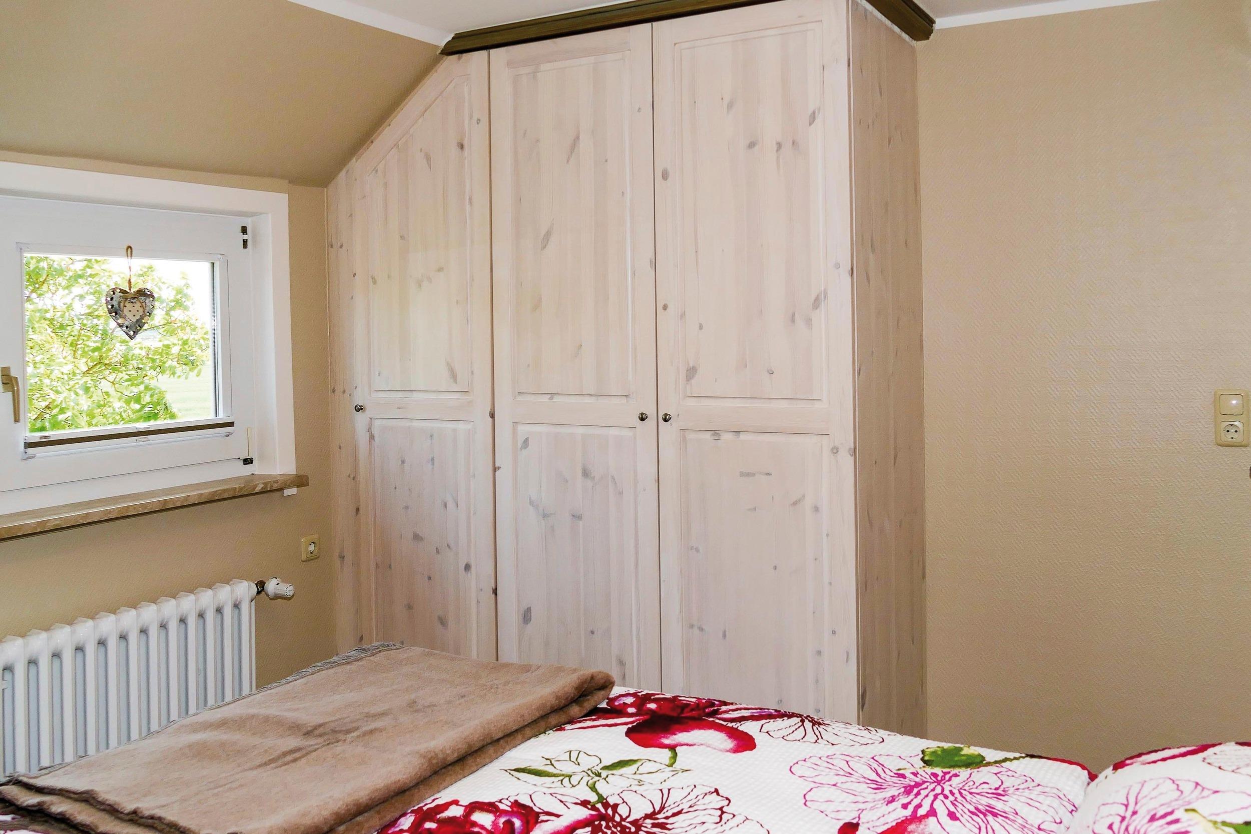 Im Obergeschoss befindet sich ein Schlafzimmer mit Doppelbett und ein zweites Schlafzimmer mit 1 Doppelbett und 1 Einzelbett,