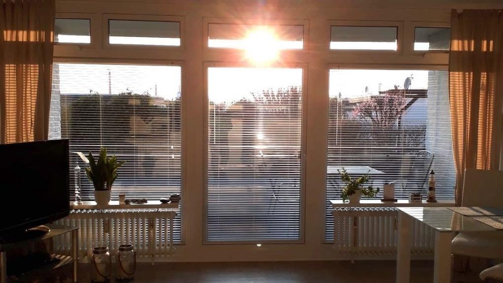 Zur technischen Ausstattung für die gute Unterhaltung gehören u.a. der sehr moderne Flachbildschirm mit SAT/Kabel-TV, DVD-Player, sowie Radio inkl. CD/BT/USB. Weiter steht Ihnen in der Wohnung kostenlos WLAN zur Verfügung. Um für Ihr leibliches Wohl zu sorgen stehen Ihnen in der gut ausgestatteten Küche u.a. ein Zwei-Platten-Induktionskochfeld, ein separater Ofen, sowie Kaffeemaschine, Wasserkocher, Toaster und Milchschäumer zur Verfügung. Der Wohn- und Essbereich ist mit einer bequemen großen Couch und Couchtisch sowie separatem Esstisch eingerichtet und lädt zum Entspannen ein. Der Schlafraum verfügt über ein Einzelbett von 1 Meter breite mal 2 Meter länge. Bei geöffnetem Fenster erwachen Sie hier am Morgen mit dem Lachen der Möwen. Das Badezimmer ist mit einer Badewanne inkl. Duschpaneel ausgeschattet und sorgt für wohliges Behagen.
