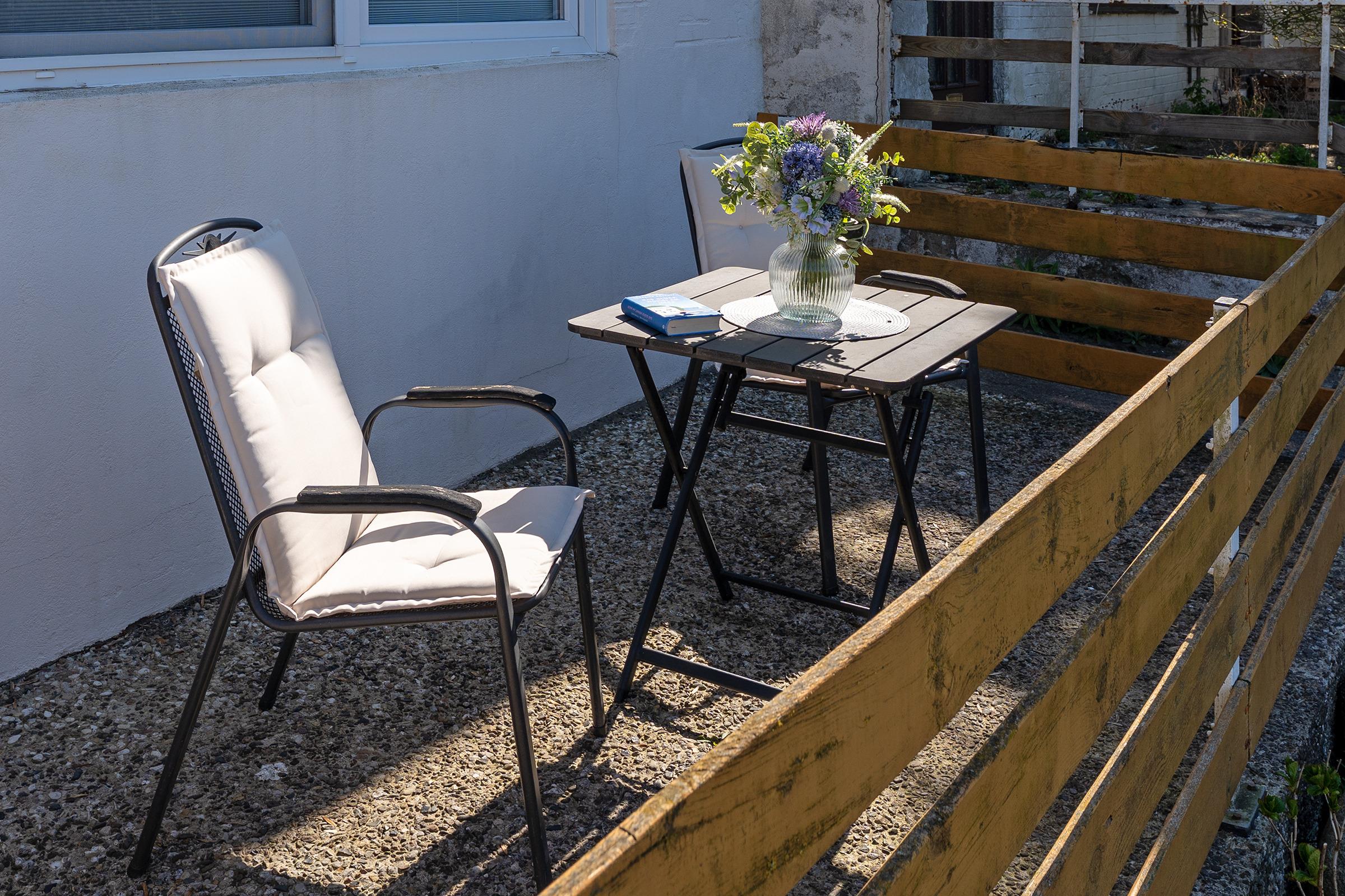 Gemütliche Ferienwohnung im Fachwerkstil mit Terrasse und Garten in Fehmarn-Staberdorf, ideal für einen entspannten Ostseeurlaub.