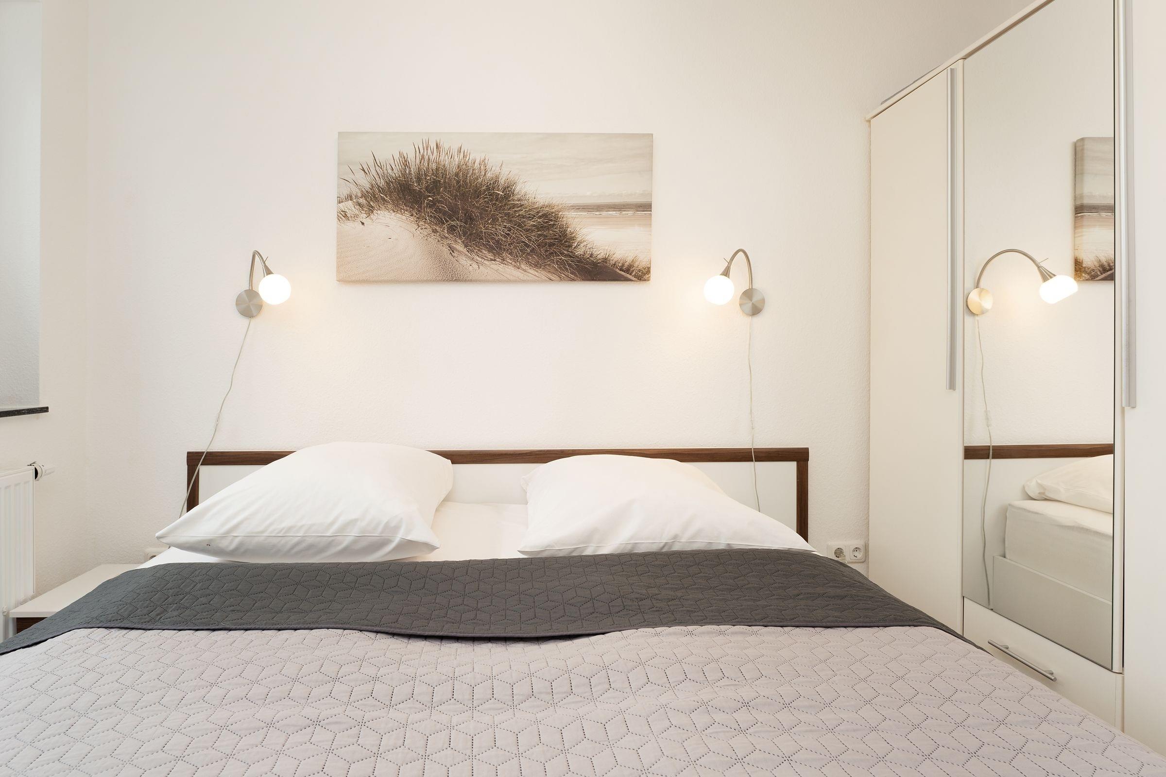 Schlafzimmer: Doppelbett, Kleiderschrank