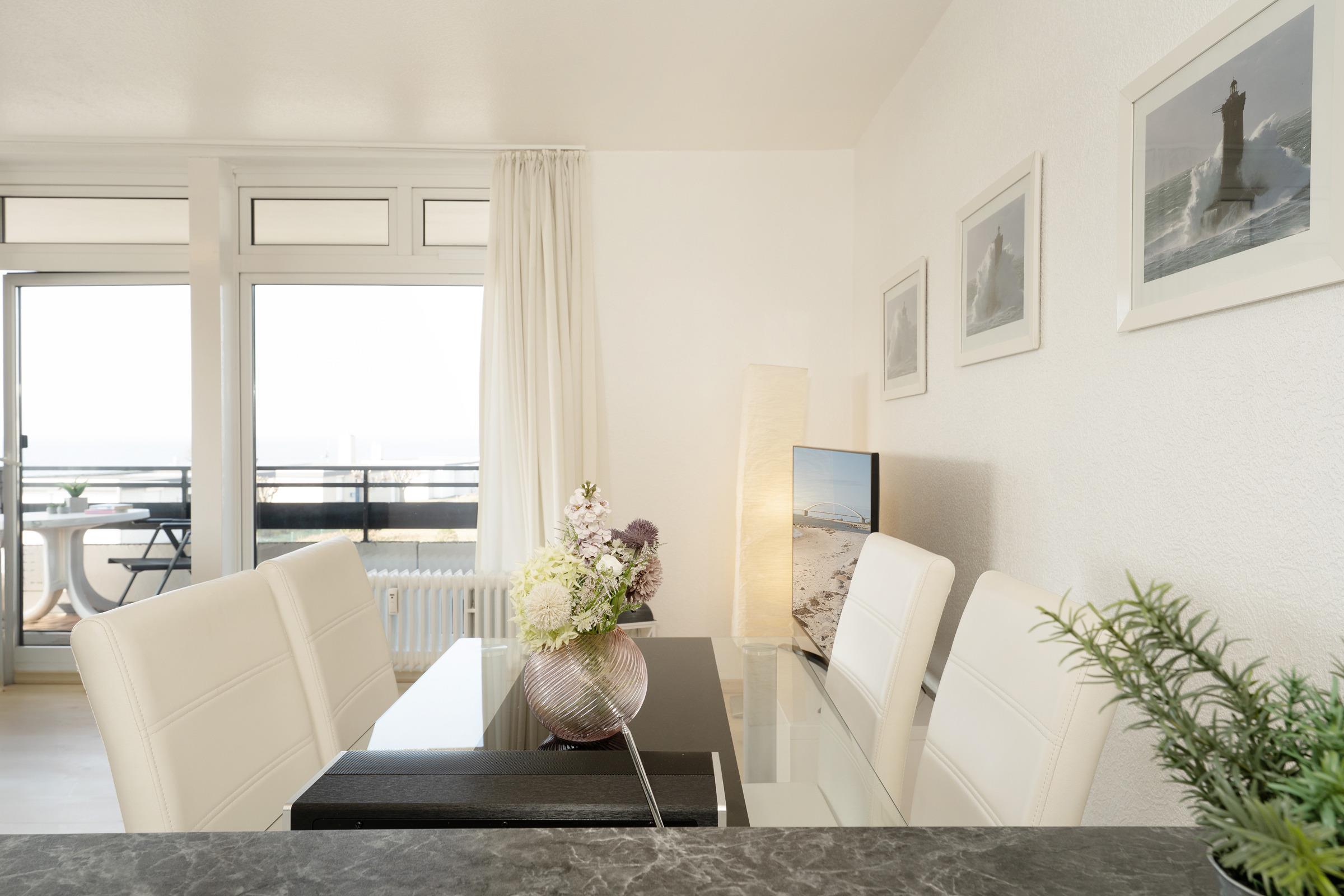 Die schicke 3-Zimmer Ferienwohnung Panorama Meerblick 2 liegt in direkter Strandnähe im Südosten der Insel Fehmarn. Die 67 m² große, helle Wohnung befindet sich im 1. Stock und ist für 2 Erwachsene und 2 Kinder geeignet.