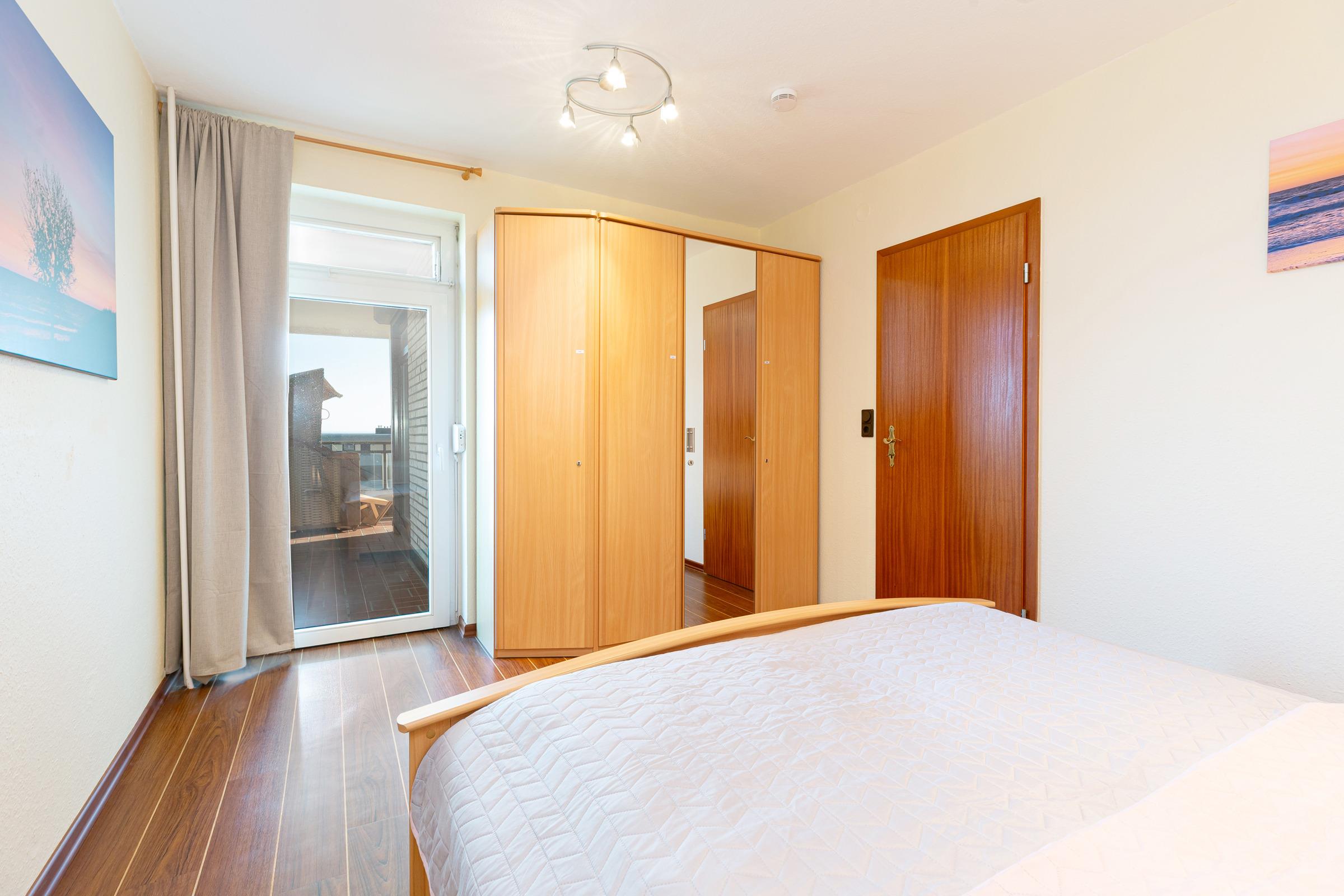 Schlafzimmer: Doppelbett, Kleiderschrank