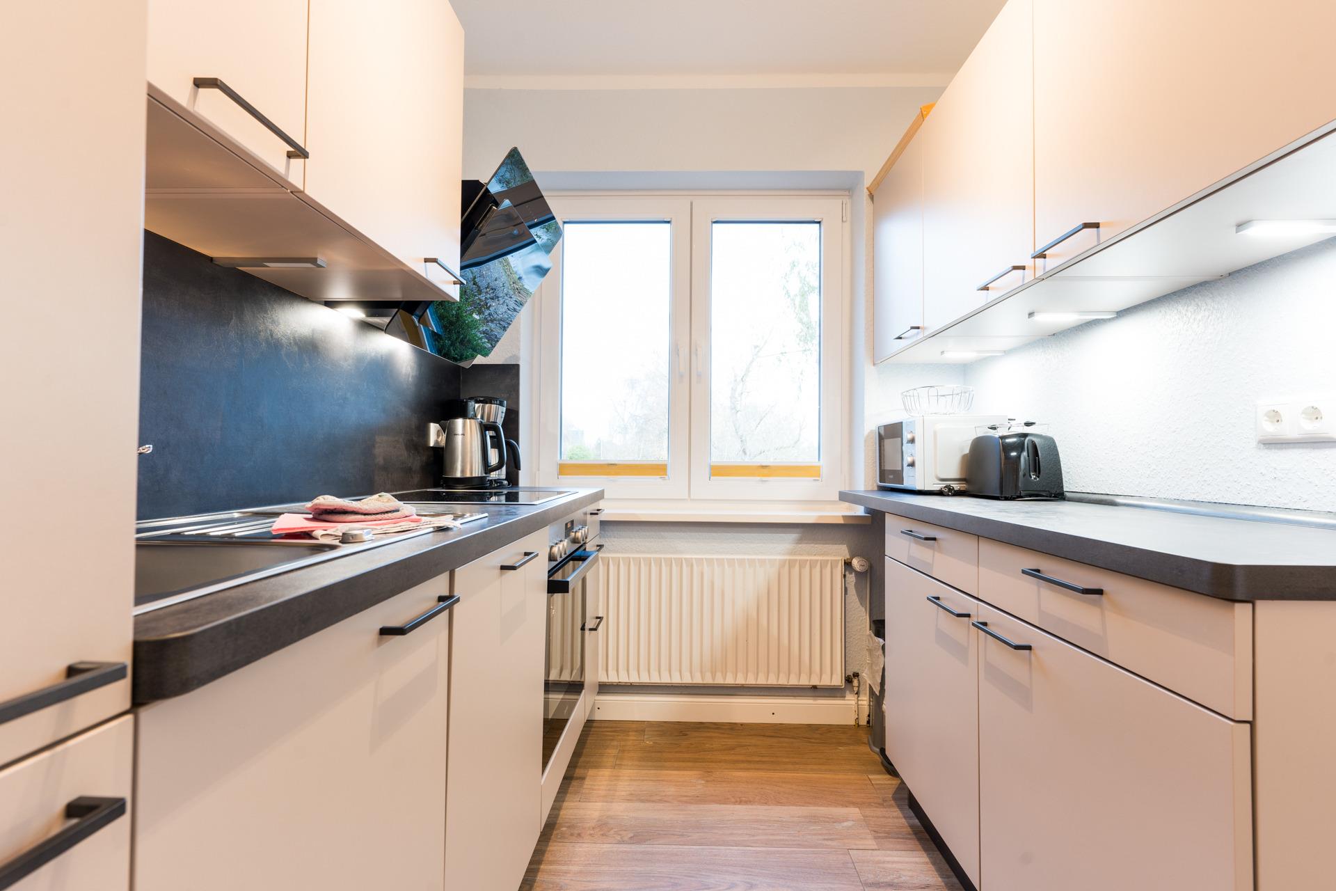 Die Küche mit sämtlichen modernen Elektrogeräten ist komplett ausgestattet.