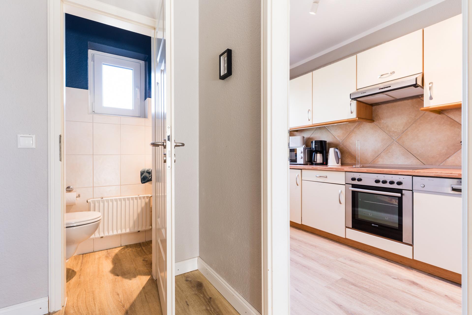 Ein Duschbad und ein separates WC befinden sich im Erdgeschoss. In der 1. Etage befindet sich das 2. Duschbad mit WC.