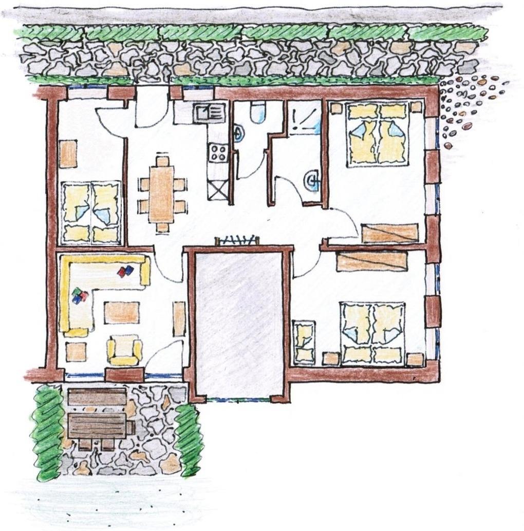 Wo früher der Dorflehrer wohnte befindet sich heute eine große Wohnung für 6 Personen.