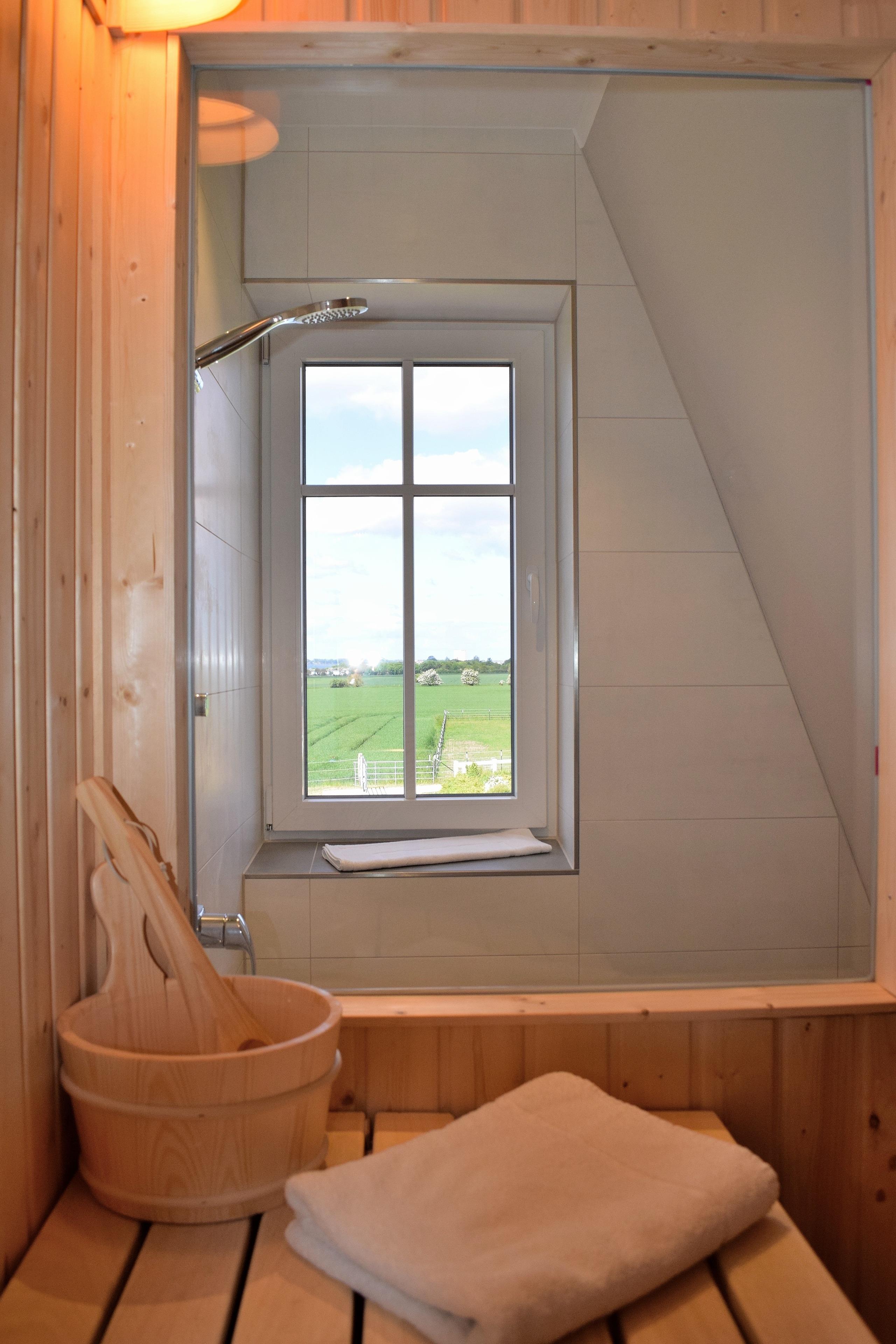Desweiteren gibt es ein Badezimmer mit Dusche und einen Wellness-Raum mit Sauna und Meerblick!