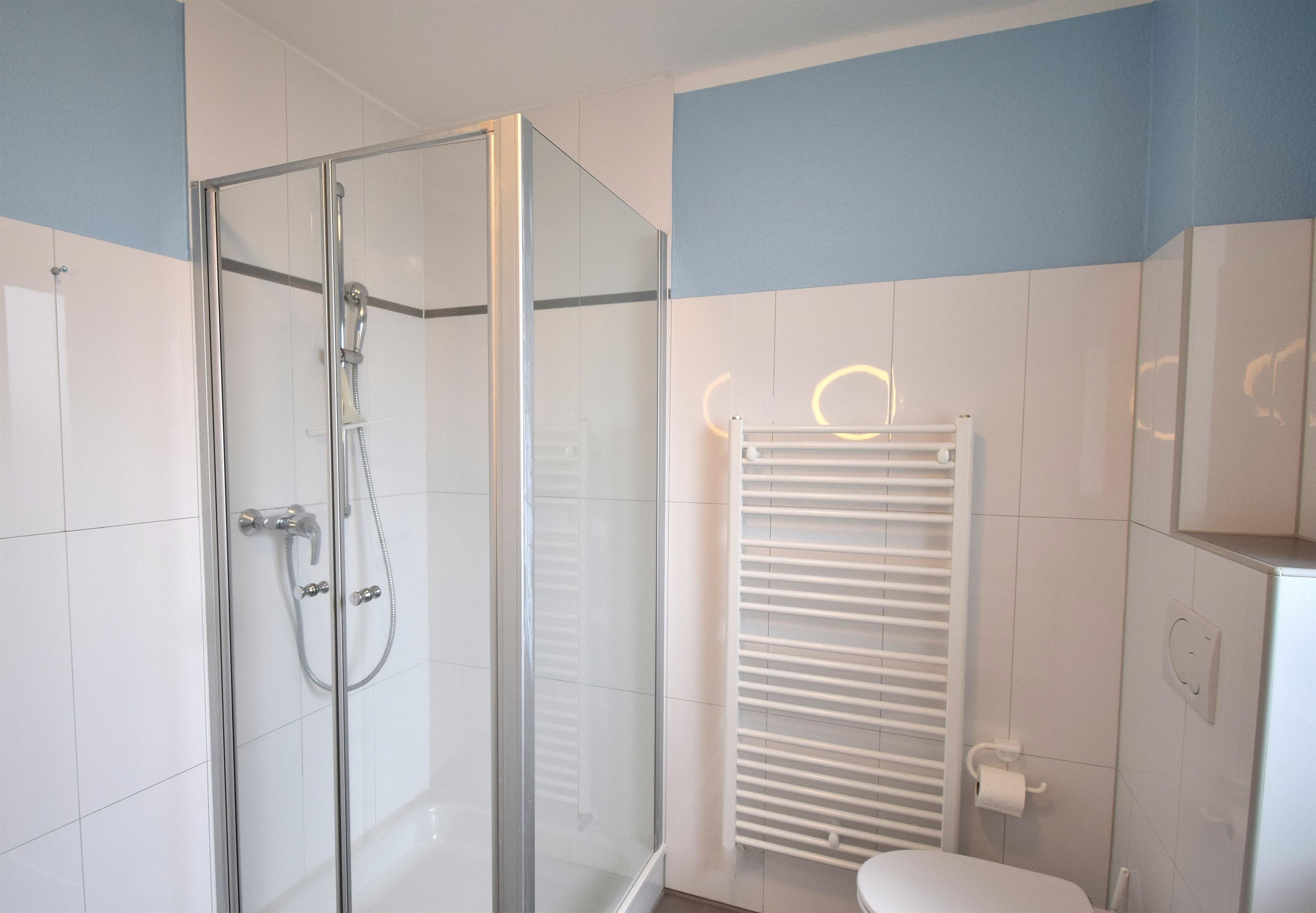 Die modernen Badezimmer mit Dusche verfügen über einen Handtuchheizkörper und Fußbodenheizung.