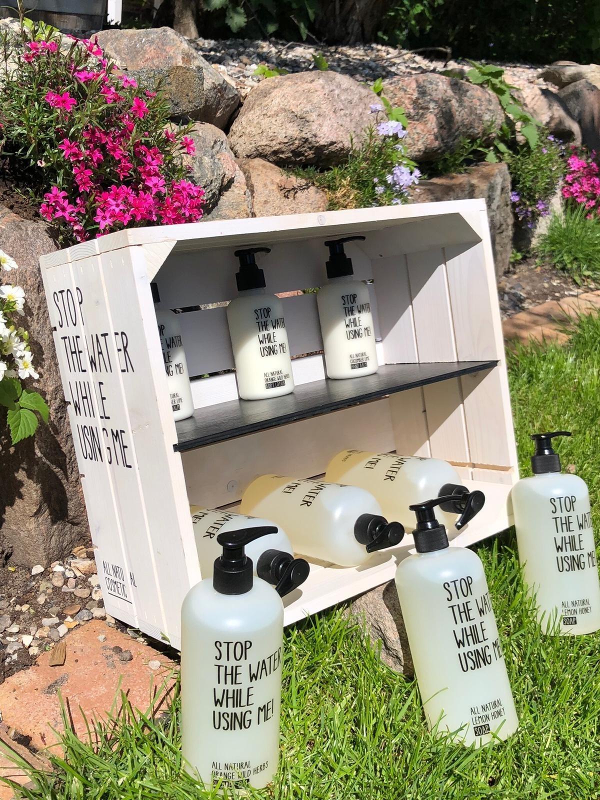 Im Bad nutzen wir Produkte von " Stop the Water" und in der Küche sind Produkte von "Ecover" und "Kiss my Kitchen" zu finden.