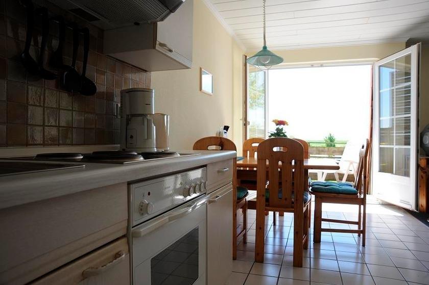 Unser Gästehaus bietet Ihnen vier große Ferienwohnungen für 4-5 Personen. Im gemütlichen Wohn-Ess-Bereich finden Sie die offene Küche mit Essplatz und direktem Zugang zum Balkon.