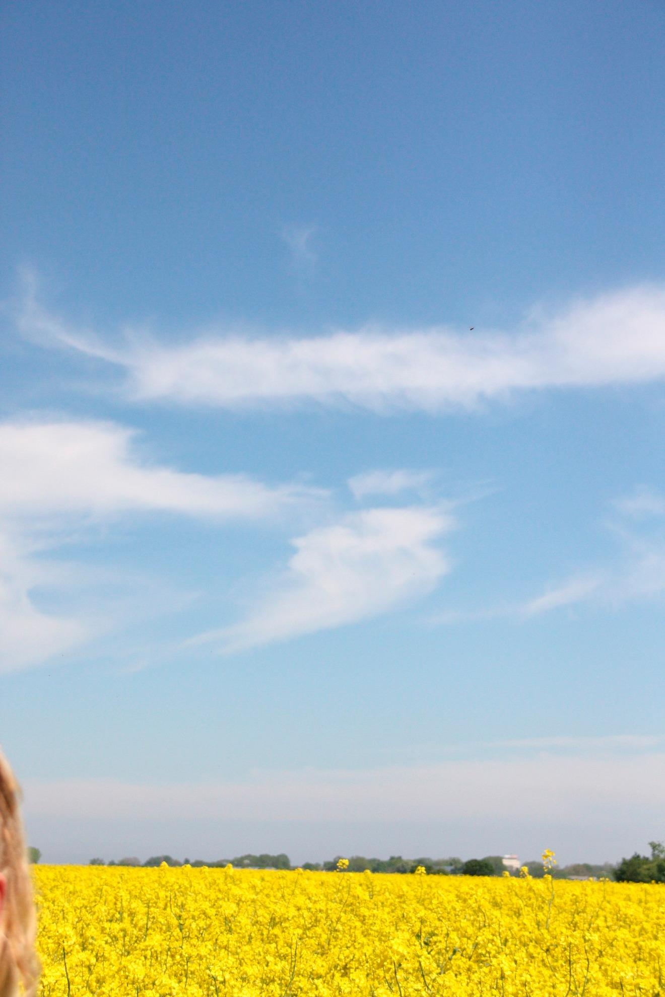 Vom Wohnzimmer blickt man in den Garten hinein, es folgt angrenzend unser Feld.
