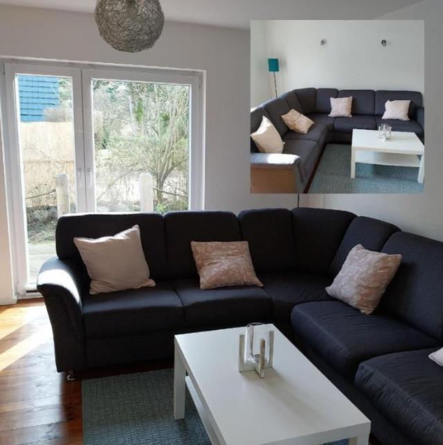 Vom Eingangsbereich aus erreichen Sie über den Flur das gemütliche Wohnzimmer mit Kamin und vorgelagerter Terrasse, die offene sehr gut ausgestattete Küche, und das Duschbad.