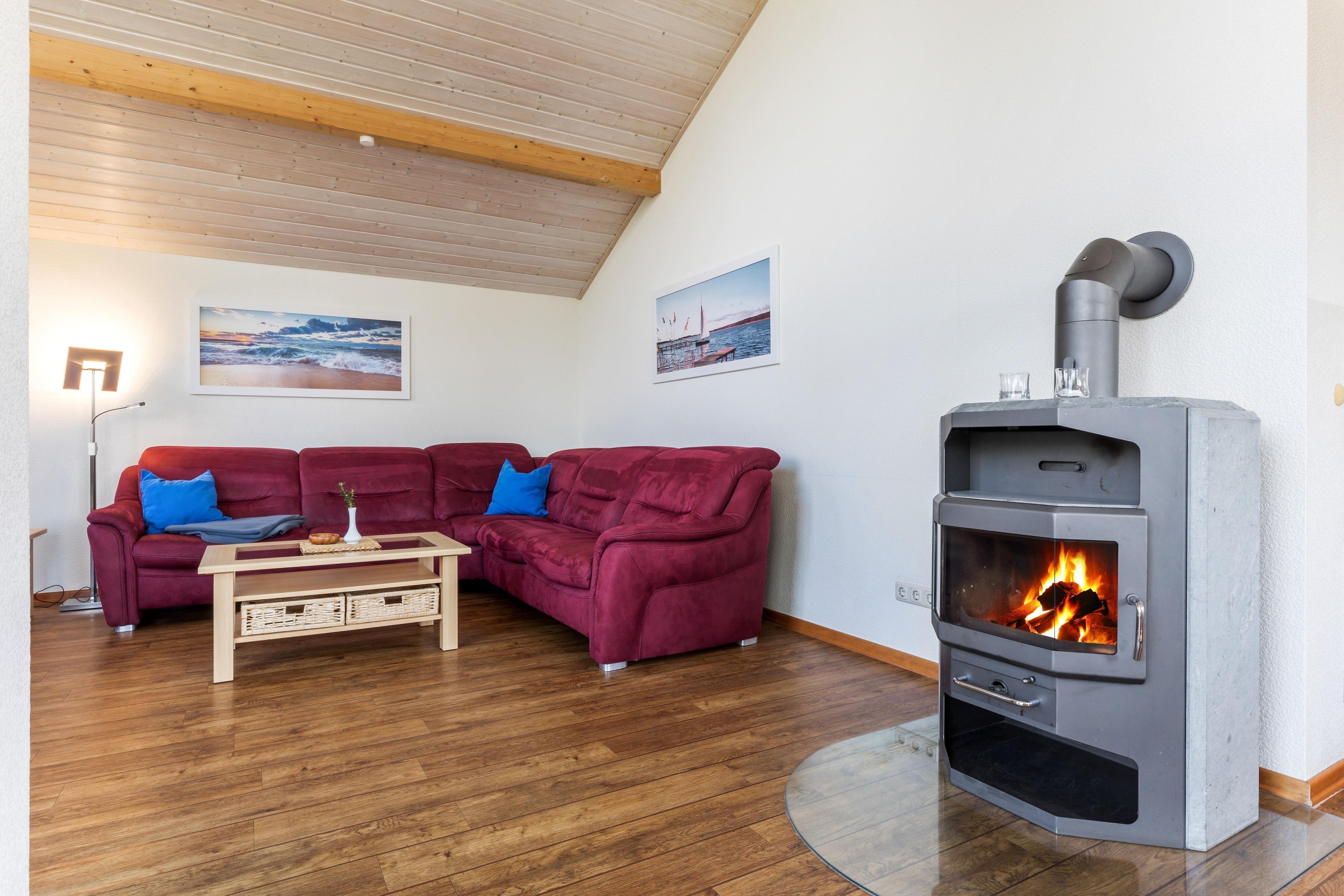 hat eine Größe von 70qm. Der großzügige Wohnbereich mit gemütlicher Sitzecke, Kamin und Essecke lädt zu gemütlichen Stunden ein. Die offene Küchenzeile lässt das Kochen im Urlaub zum Familienerlebnis werden. Natürlich ist die Küche komplett ausgestattet mit Geschirrspüler, Mikrowelle, Backofen etc. Ein Schlafzimmer verfügt über Doppelbetten, im anderen befinden sich zwei Einzelbetten. Im Badezimmer haben dank der zwei Waschbecken alle genügend Platz. Ein Handtuchwärmer sorgt dafür, dass die Handtücher nach dem Bad in der geräumigen Dusche vorgewärmt sind und auch die Fußbodenheizung sorgt für Wohlfühl-Atmosphäre. Im danebenliegenden Gäste WC befinden sich ein zweites WC und ein Waschbecken.