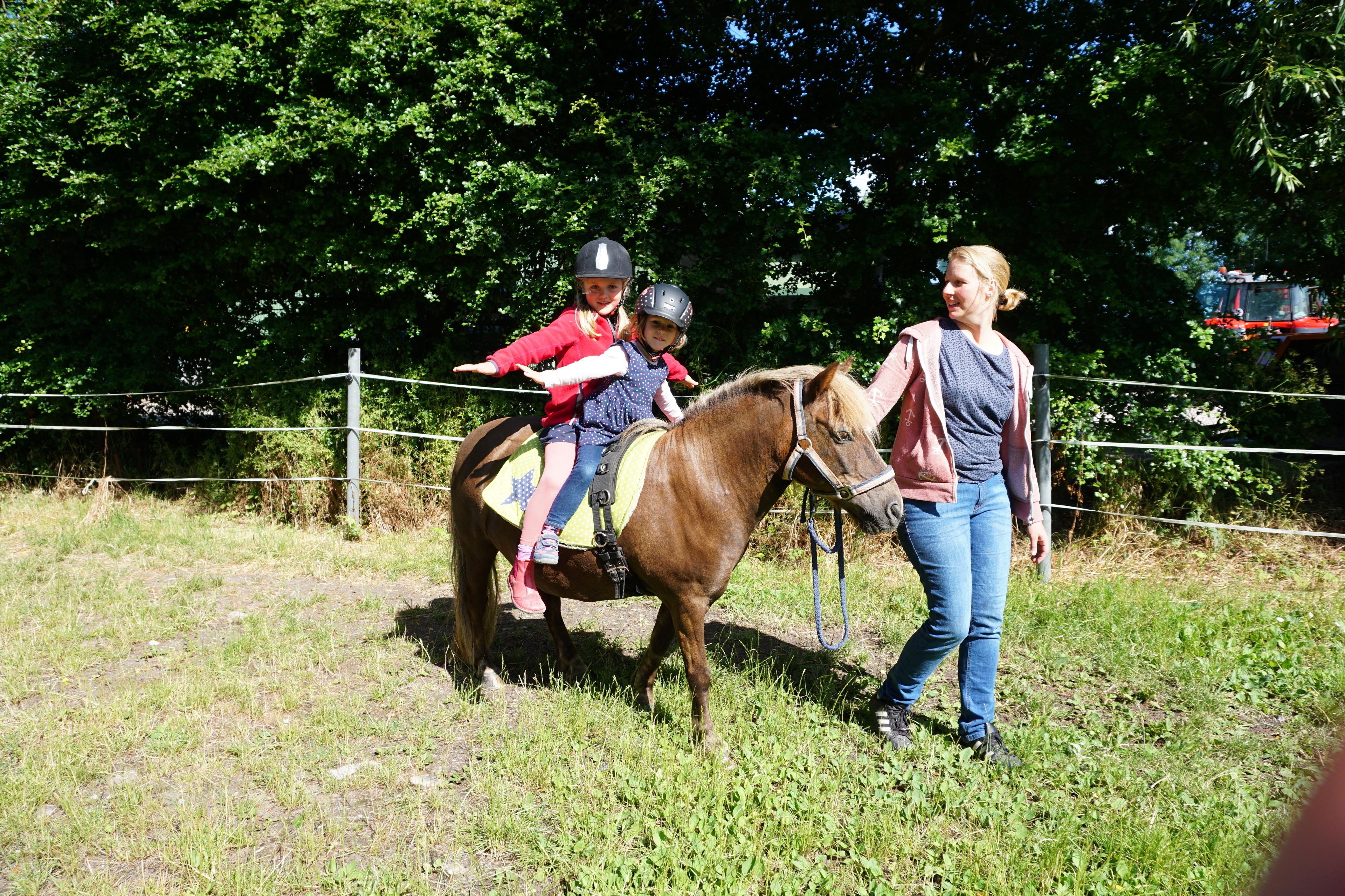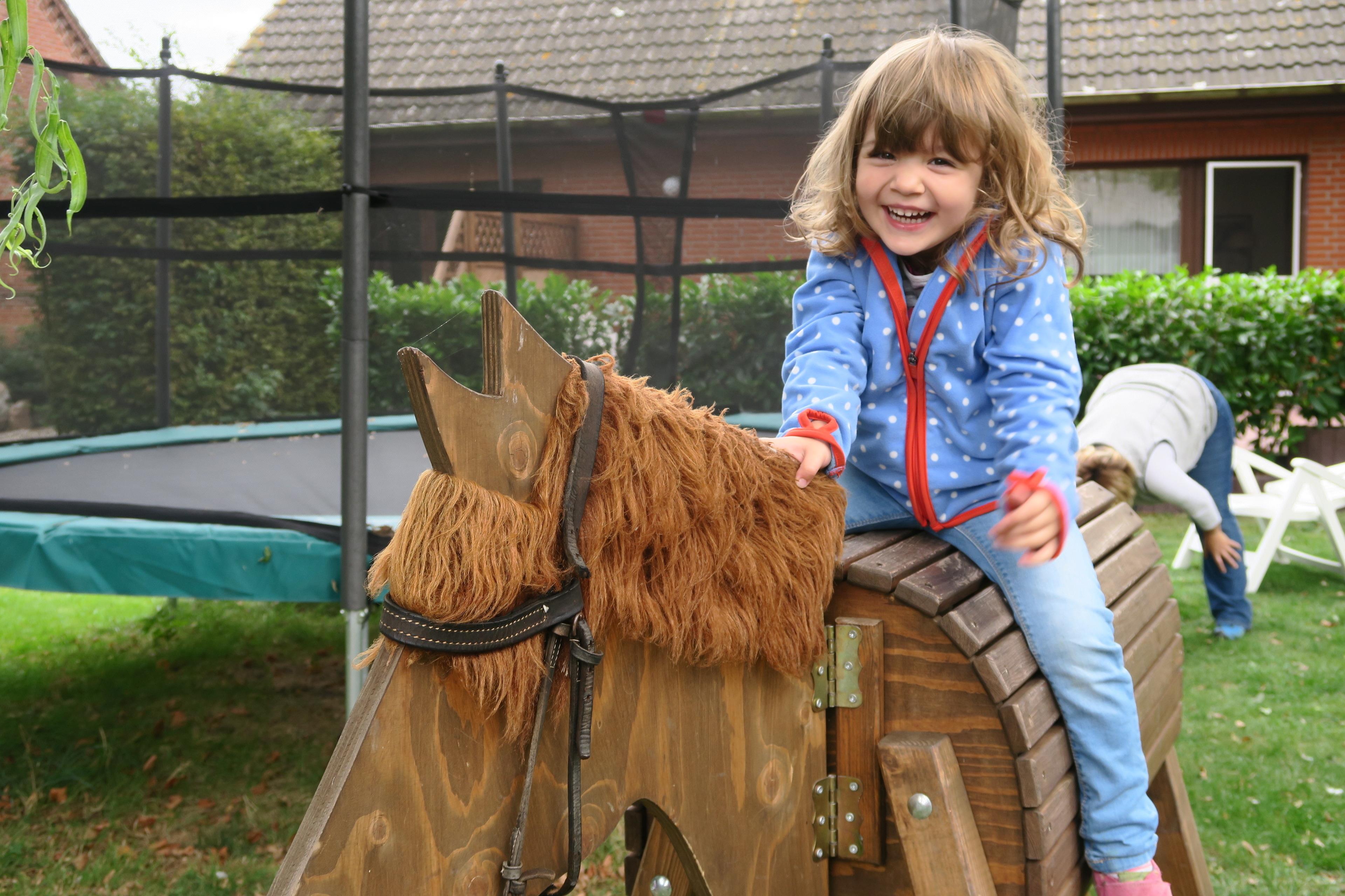 Auf dem Spielplatz mit Trampolin können die Kleinen sich richtig austoben, mit den Fahrzeugen (Dinocars) geht es auf Entdeckungstour und beim Ponyreiten und Tierefüttern von Katzen, Kaninchen, Ziegen und Hühner werden neue Freundschaften geschlossen. In unserer Spielscheune beim Basketball, im Gartenhaus beim Kickerspielen oder in der Tischtennishalle vergeht die Zeit bei schlechtem Wetter wie im Fluge. Immer wieder ein Highlight für große und kleine Gäste die landwirtschaftliche Planwagenfahrt mit dem Bauern zur Rinderweide. Während der Tour schnacken und klönen die Großen mit dem Bauern und die Kleinen haben Ihren Spaß beim Landwirtschaftsquiz. Schließlich ist auf einen Bauernhof immer was los und es gibt ne Menge zu entdecken! Auch bei den gemeinsamen Grillabenden am Gartenhaus sind schon so manche Freundschaften entstanden.