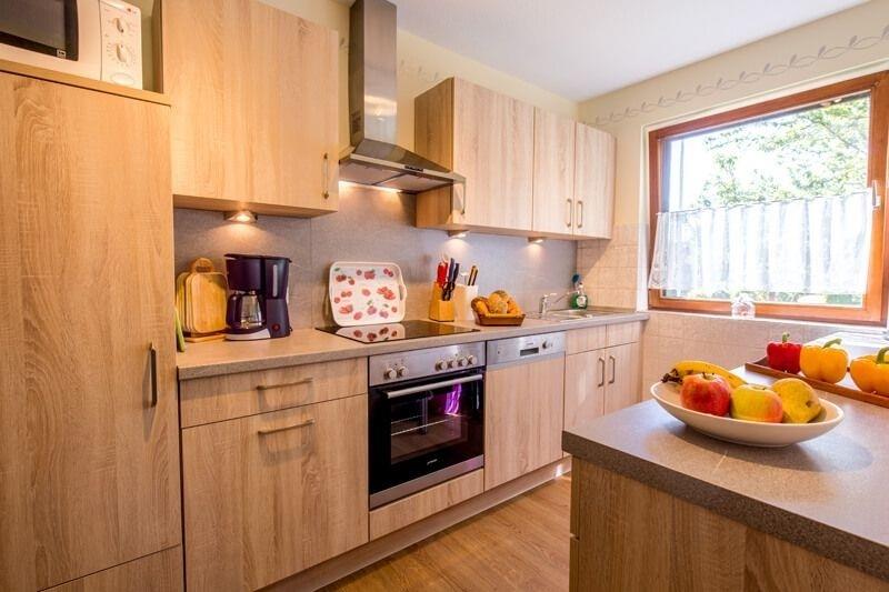 Das Ferienhaus hat eine Größe von 150m². Der großzügige Wohnbereich mit gemütlicher Sitze- und Essecke lädt zu geselligen Stunden ein. Der kurze Weg zur direkt nebenan liegenden Küche lässt das Kochen im Urlaub zum Familienerlebnis werden. Natürlich ist die Küche komplett ausgestattet mit Geschirrspüler, Mikrowelle, Backofen etc. Ebenfalls im Erdgeschoss des Hauses liegen ein Badezimmer, das über eine geräumige Wellness-Dusche, WC, Waschbecken und Handtuchwärmer verfügt sowie zwei Schlafzimmer mit Doppelbetten. Das größere der beiden Schlafzimmer bietet eine ruhige Leseecke sowie zusätzlich Platz für ein Kinderbett. Im Obergeschoss befinden sich zwei Schlafzimmer jeweils mit Doppelbetten und ein weiteres Badezimmer. Herrlich relaxen und ausspannen kann man auf der eigenen Terrasse im Strandkorb oder auch beim gemütlichen Grillen.