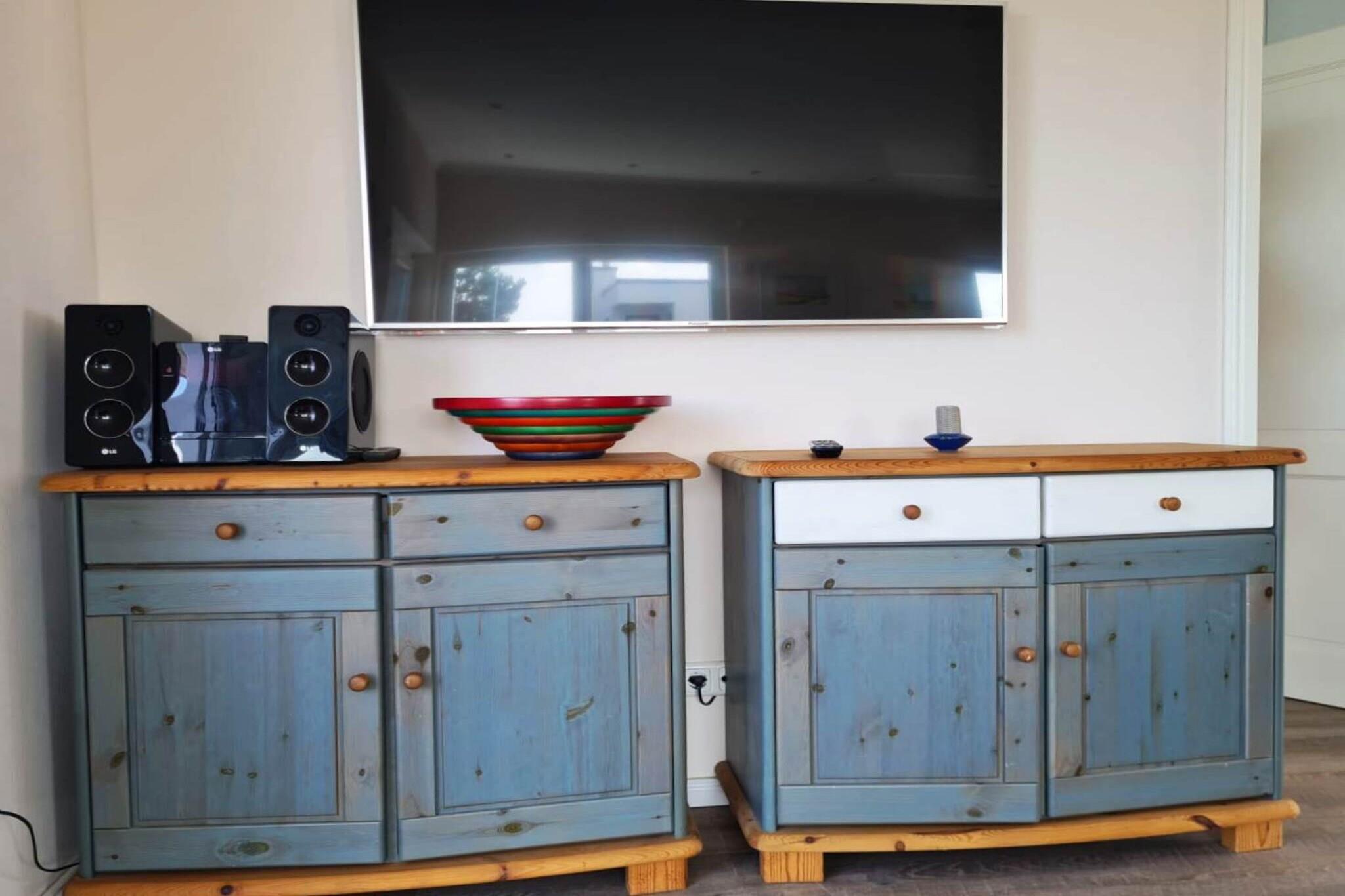 Parterre: (Wohnzimmer(Radio), Schlafzimmer(Doppelbett(180 x 200 cm), TV), Badezimmer(Dusche, Waschbecken, Toilette)) In der 1. Etage: (offene Küche(Kochplatte(Induktion), Wasserkocher, Toaster, Kaffeemaschine(pads), Backofen, Spülmaschine, Kühlschrank(+ Gefrierfach)), Wohn/Esszimmer(TV, Esstisch(4 Personen), Stereoanlage), Schlafzimmer(Etagenbett), Schlafzimmer(Doppelbett(180 x 200 cm)), Badezimmer(Dusche, Waschbecken, Toilette)) Garage, Balkon, Heizung(durch Klimaanlagen), Terrasse, Garten(alleinige Nutzung, umzäunt), Fahrradabstellraum, Gartenmöbel, Liegen, Grill(Gas), Parkplatz, Spielgeräte, Hochstuhl, Gesellschaftsspiele, Babybett (kostenlos), Handtücher geben Gebühr, Bettwäsche gegen Gebühr