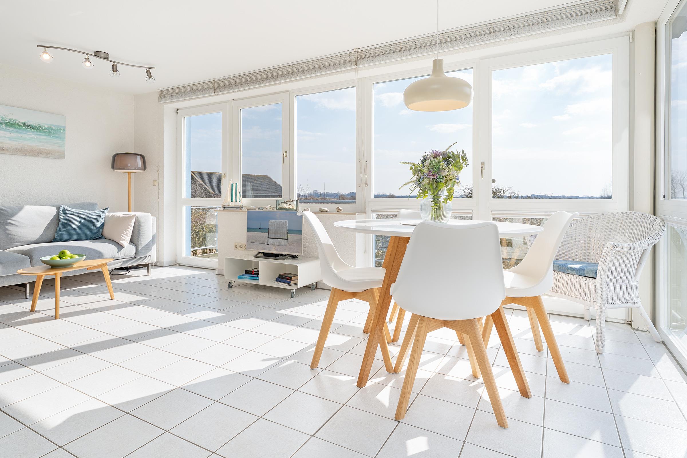 Erholung pur finden bis zu 4 Personen in diesem ca. 100 m² großen 3-Zimmer-Ferienhaus Meerkieker auf Fehmarn. Mit zwei Balkonen und grandiosem Meerblick.