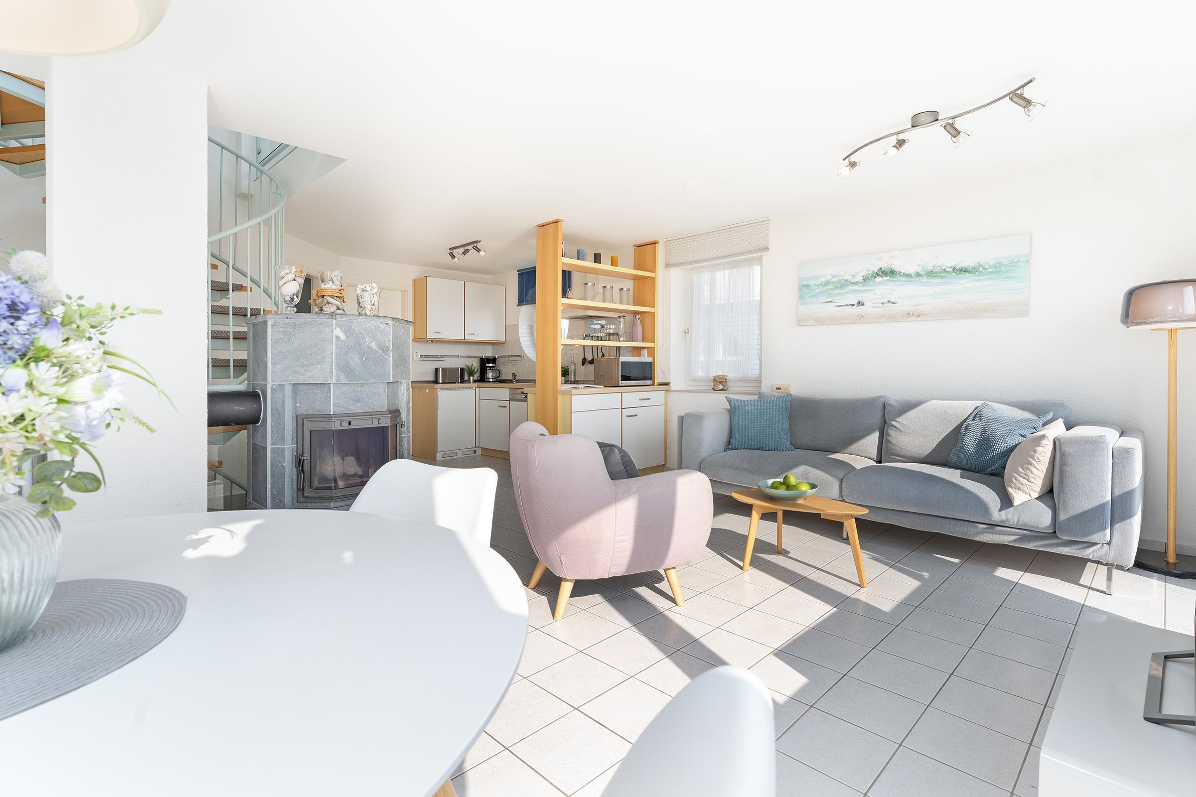 Charmantes Ferienhaus Meerkieker in Fehmarn mit Meerblick, zwei Balkonen und Kamin für erholsame Tage zu jeder Jahreszeit.