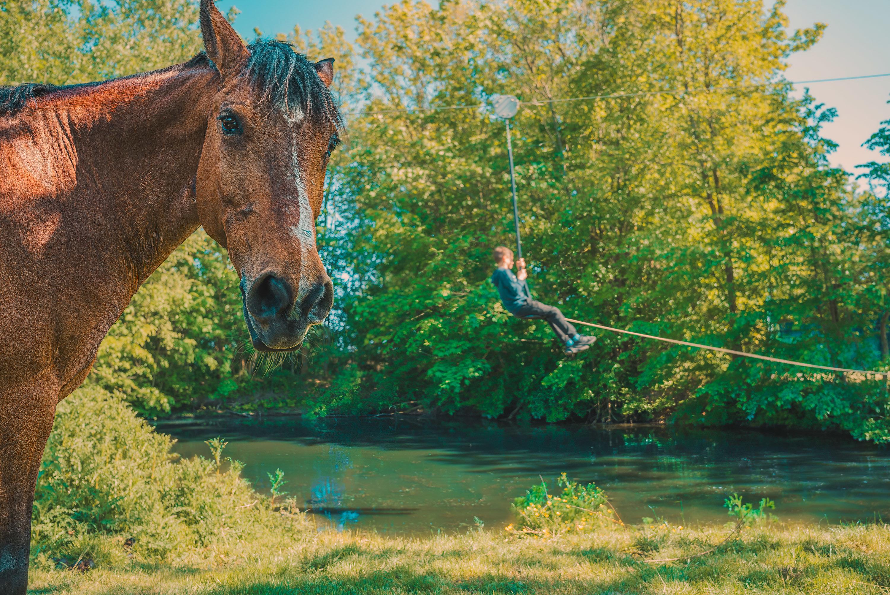 Eine beliebte Attraktion für unsere kleinen Gästen sind die Tiere: Mini-Schweine, Kaninchen, Hühner, Meerschweinchen, Schafe, Ziegen sowie 8 Ponys und Pferde, mit denen i.d.R. zweimal am Tag ausgeritten wird.