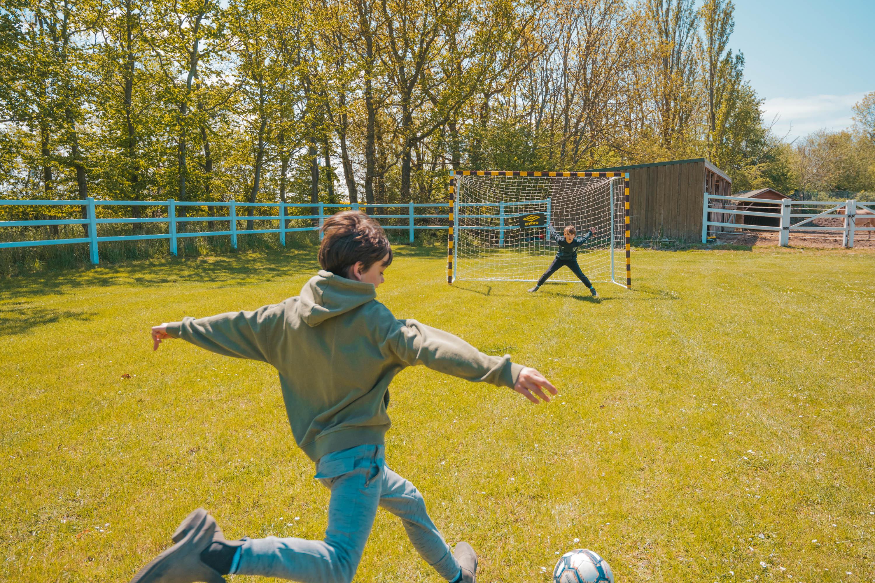Und bei schlechtem Wetter können sich die Kinder in der großen, beheizbaren Spielscheune (mit Billard, Kicker, AirHockey, Trampolin, Rutsche, Bällebad ...) vergnügen.