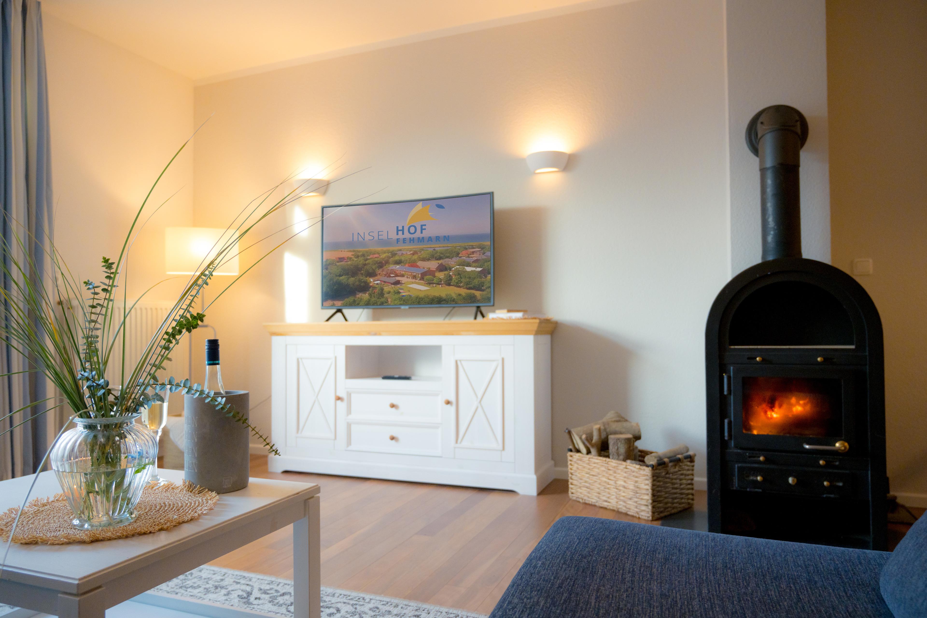 Gemütliche Ferienwohnung auf Fehmarn mit Kamin, Terrasse und vielen Freizeitmöglichkeiten auf großem Hof.