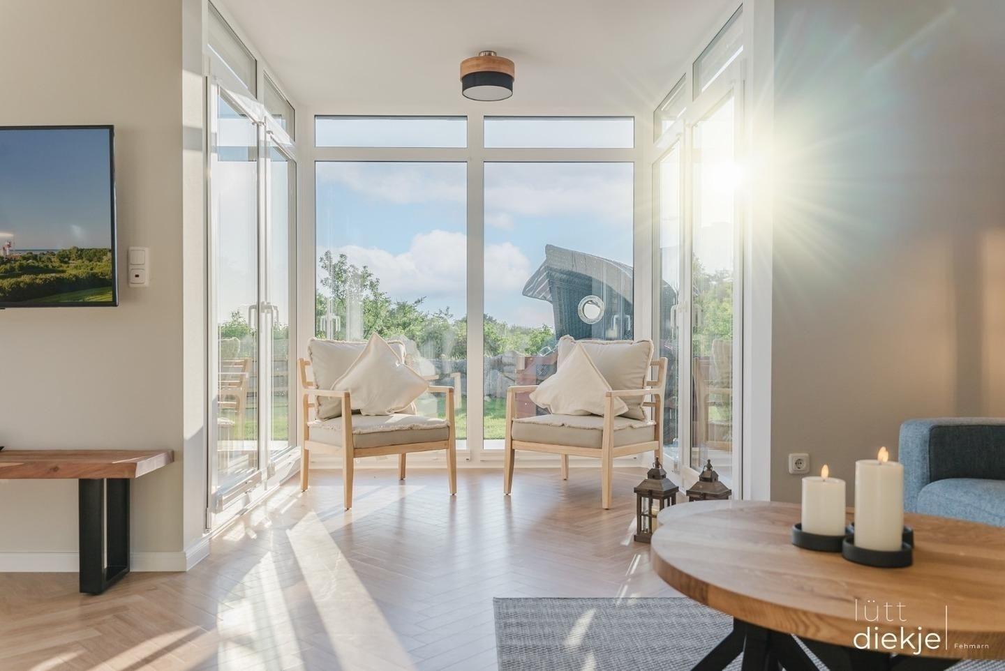 Luxuriöse Doppelhaushälfte mit Sauna und Seeblick in Fehmarn, nur 150 m vom Strand entfernt.