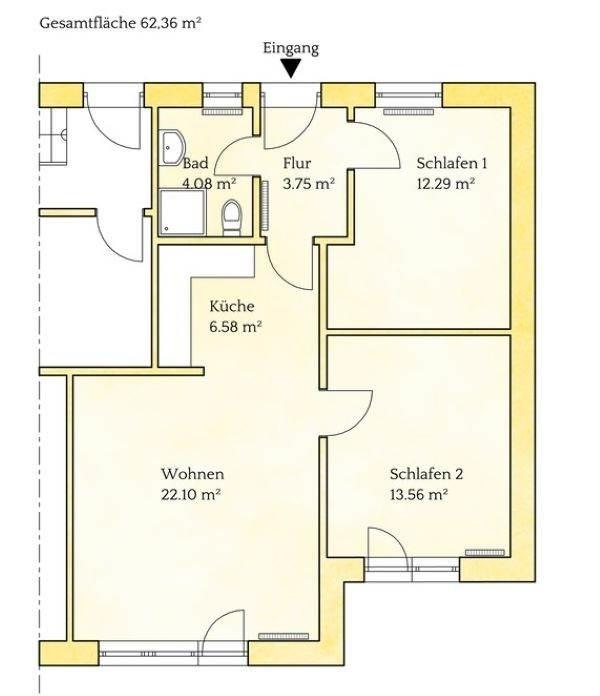 Wohnfläche 62 m²