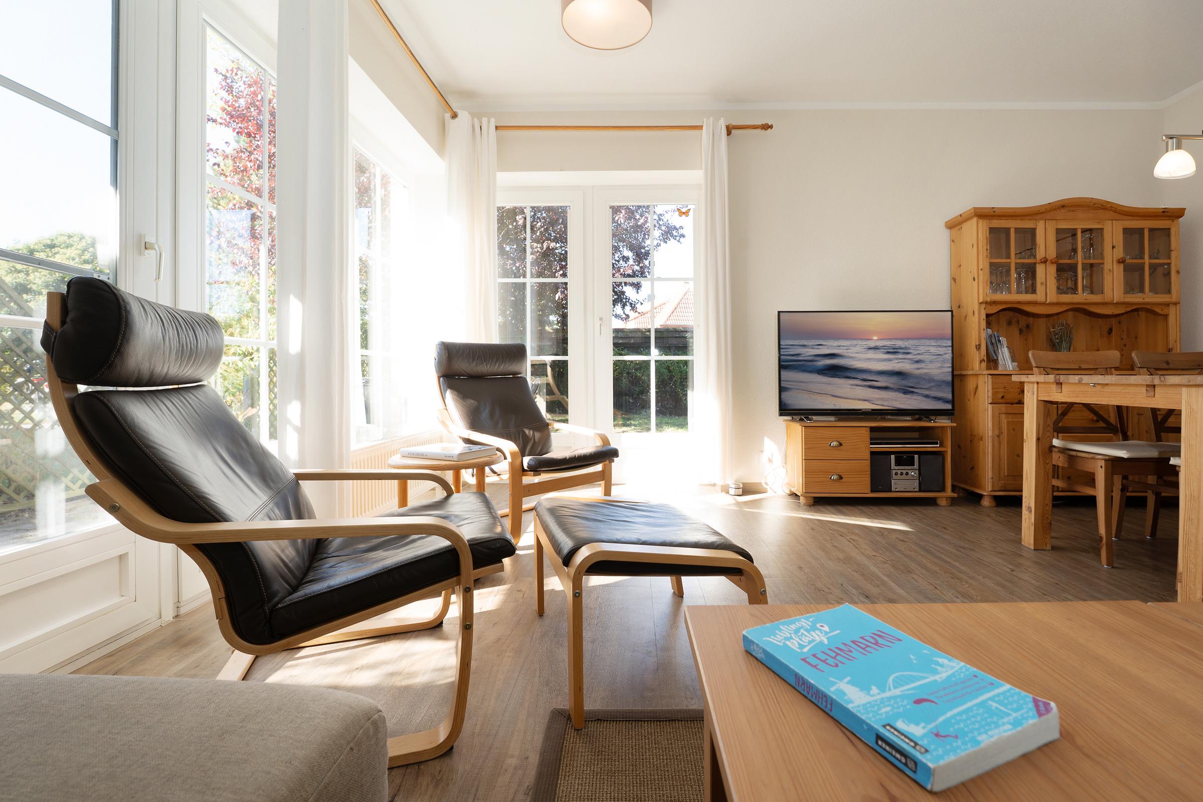 Die traumhafte 3-Zimmer-Ferienwohnung Inselsonne 1 mit sonniger Terrasse liegt in unmittelbarer Nähe zum Golfplatz, dem bekannten Wassersportrevier Wulfener Hals und Fußwegentfernung zum Strand. Sie bietet im Erdgeschoss auf ca. 75 m² ausreichend Platz für bis zu 6 Erwachsene und 1 Kind.