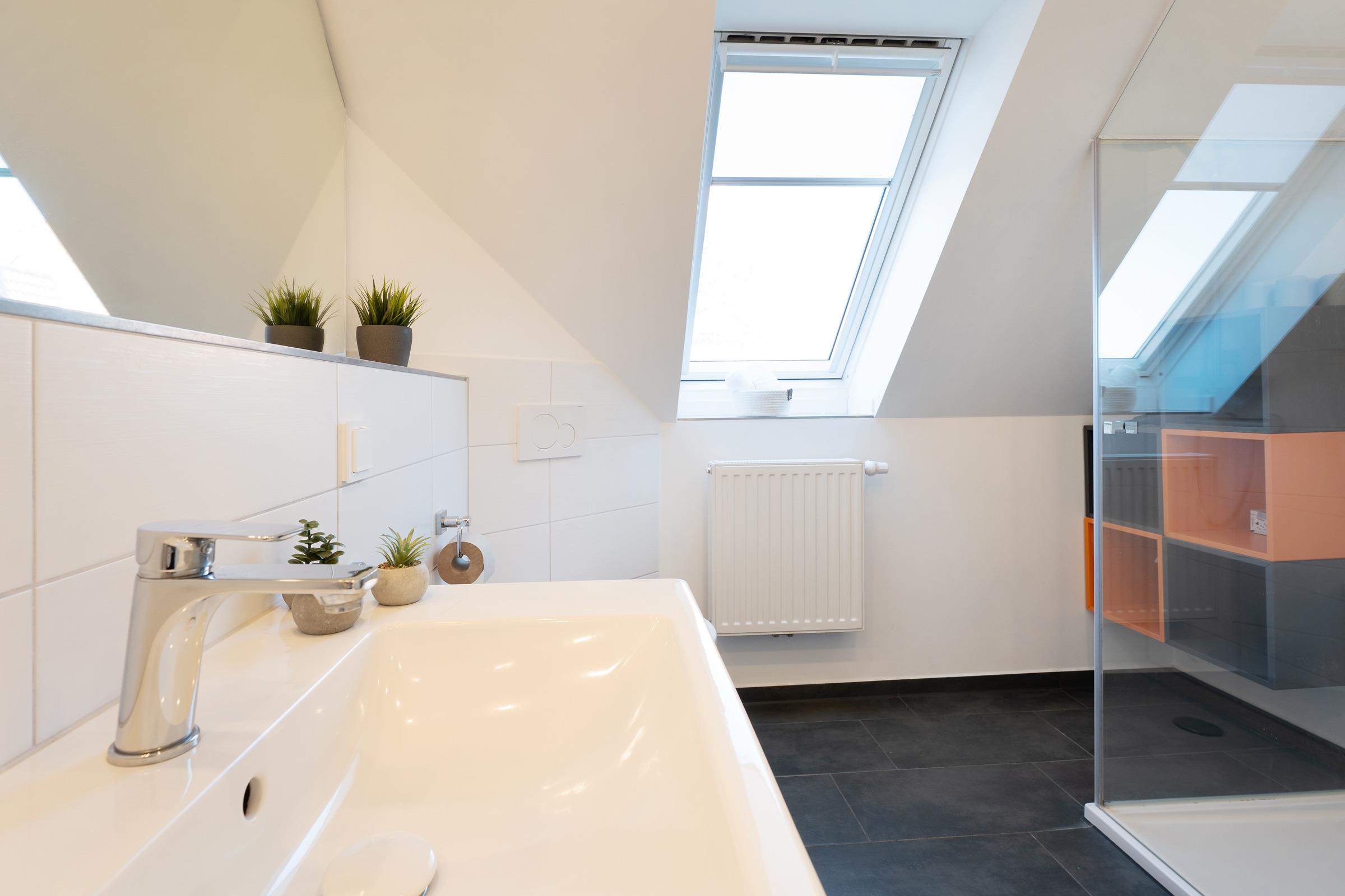 Die charmante Maisonettewohnung punktet mit einem hellen Wohn- und Essraum mit bequemer Polstergarnitur, TV-Gerät, Essecke sowie Zugang zum möblierten Balkon. Die separate Küche ist mit allen Annehmlichkeiten, wie z. B. Spülmaschine, Herd, Backofen und Mikrowelle ausgestattet. Im großen Schlafzimmer befinden sich ein Doppelbett (2x 80x200 cm, offenes Fußteil) sowie ein Kleiderschrank. Im zweiten Schlafzimmer stehen zwei Einzelbetten (je 90x200 cm) und ebenfalls ein Kleiderschrank. Das Badezimmer mit Fenster erwartet Sie mit Dusche, WC und modernem Waschtisch.