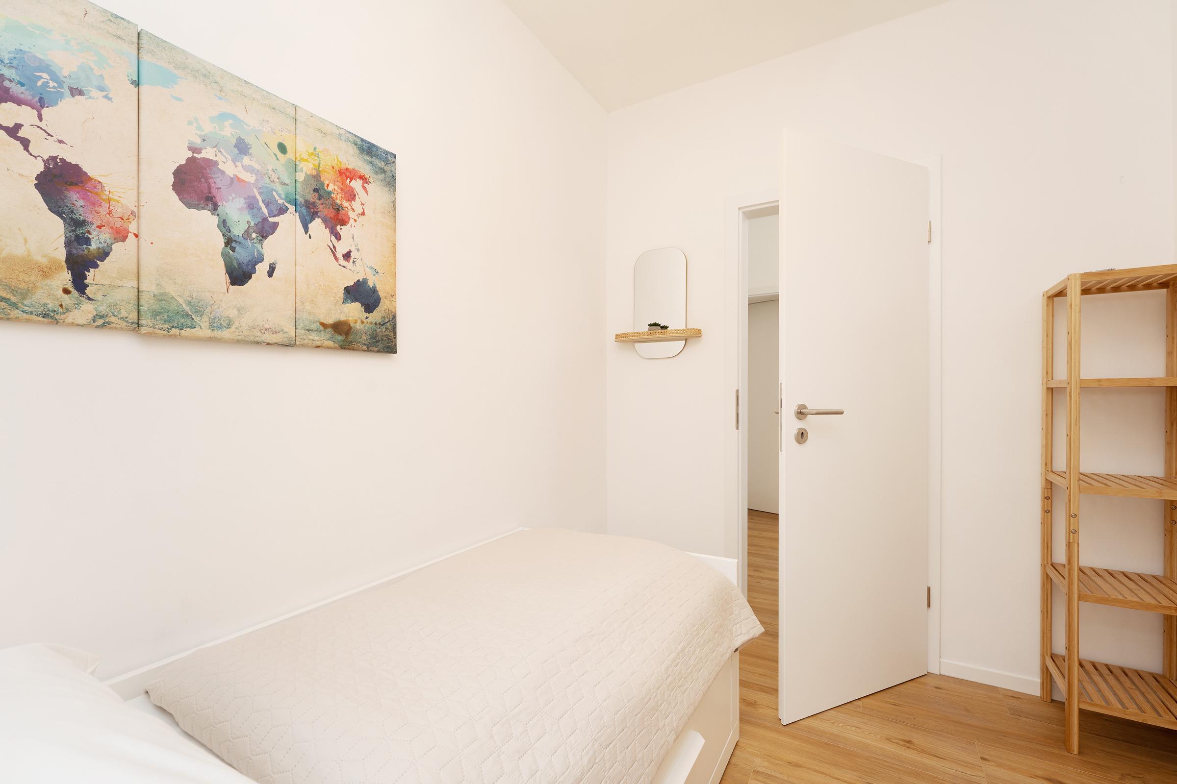 Schlafzimmer 3: 1 Einzelbett ausziehbar auf 1 kleines Doppelbett 2x 80 cm, Verdunkelung: Plissee