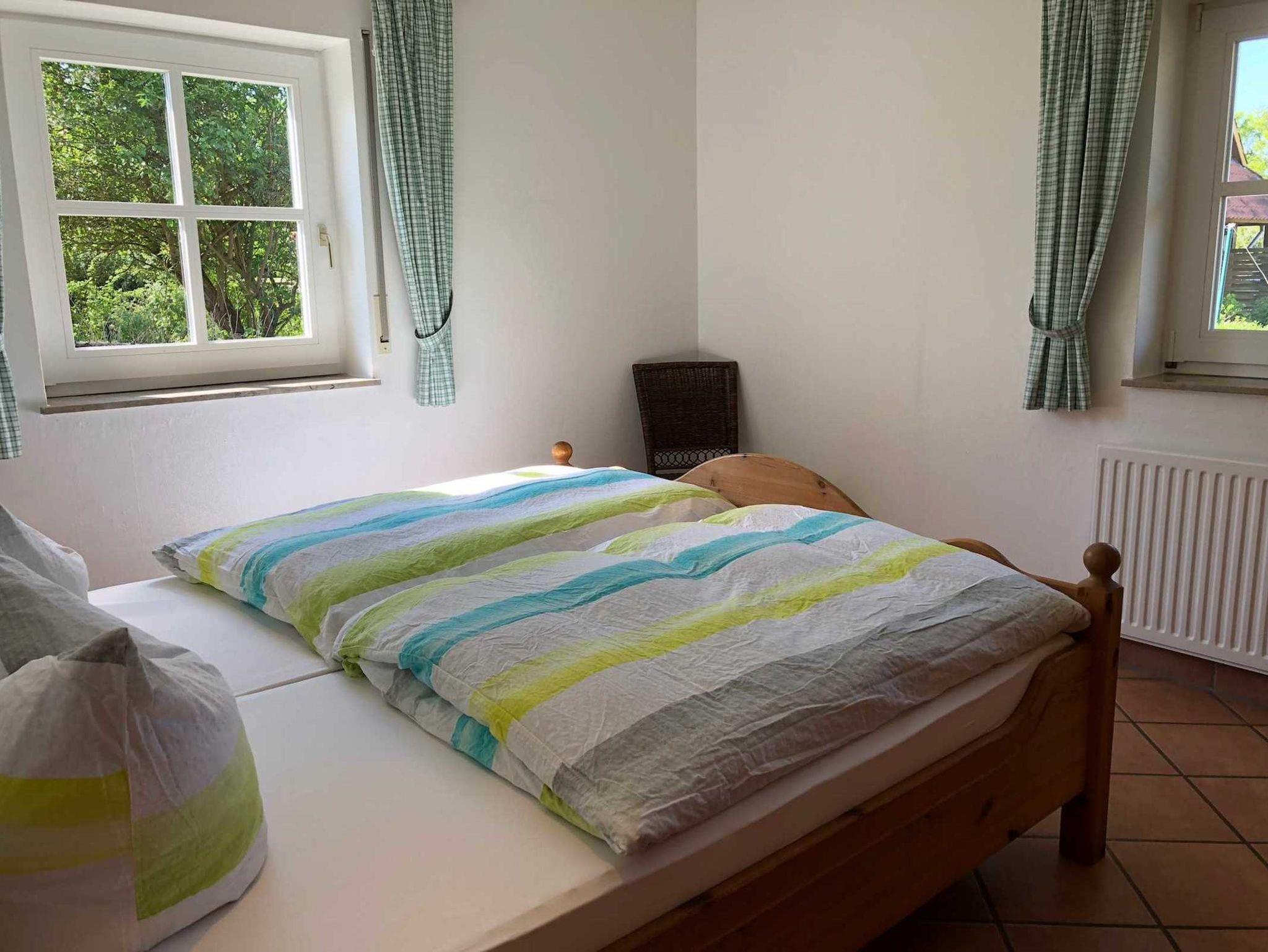 Schlafzimmer 1: mit Doppelbett (180x200), und entweder ein Kinderreisebett oder ein Zustellbett für die 5. Person/Kind bis 12 Jahre, sowie 1 Kleiderschrank,
