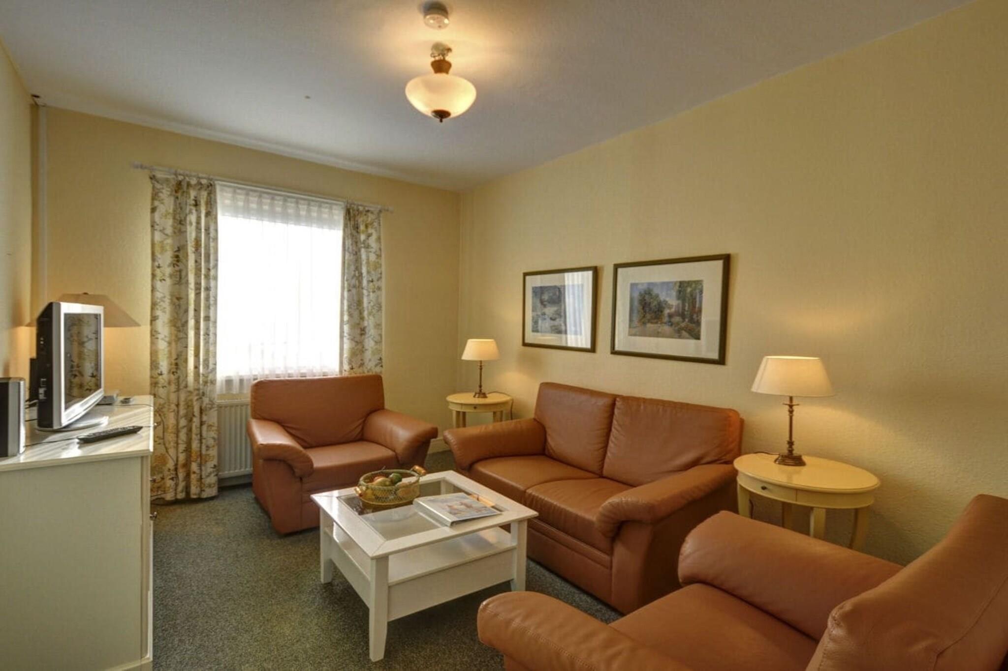 Die Wohnung für 2 Personen liegt im Erdgeschoss und ist 35 m² groß. Sie verfügt über ein Schlafzimmer mit Doppelnbett und Kleiderschrank, eine Küchenzeile sowie ein Duschbad. Die Küchenzeile im Wohn-/Esszimmer verfügt über Dunstabzugshaube, Herd, Mikrowelle, Geschirrspüler und Geschirr. Der Wohnbereich lädt mit dem gemütlichen Sofa zu entspannten TV-Abenden ein. Eine PKW Stellmöglichkeit befindet sich am Haus. Hier finden Sie außerdem die Gemeinschaftsterrasse mit Gartenmöbeln und Strandkörben.