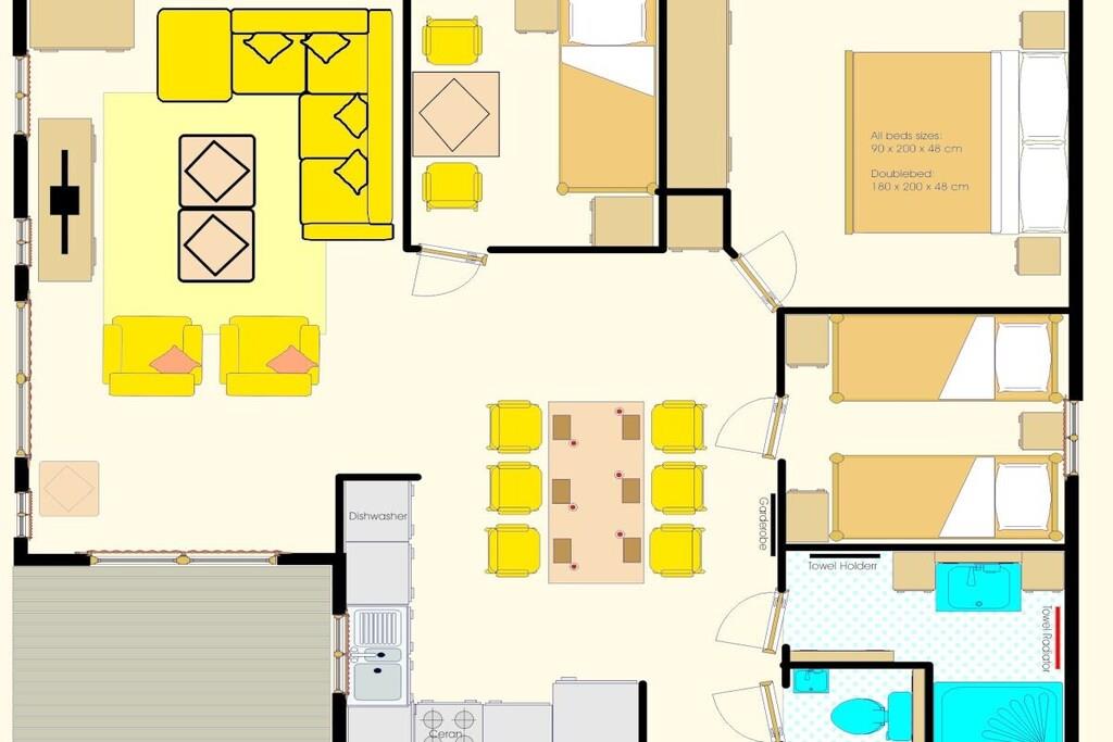 Das Ferienhaus Seeadler mit einer Größe von 70 m² mit 3 Schlafzimmern ist für 5 Personen geeignet. Es befindet sich im neuen "Dünenpark" des Ferienparks Wulfener Hals. Es hat eine große Terrasse mit Gartenmöbeln, 2 Sat-TV, Boxspringbetten, Elektroherd mit Backofen, Spülmaschine u.v.m.