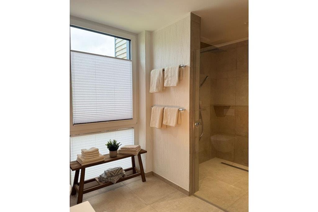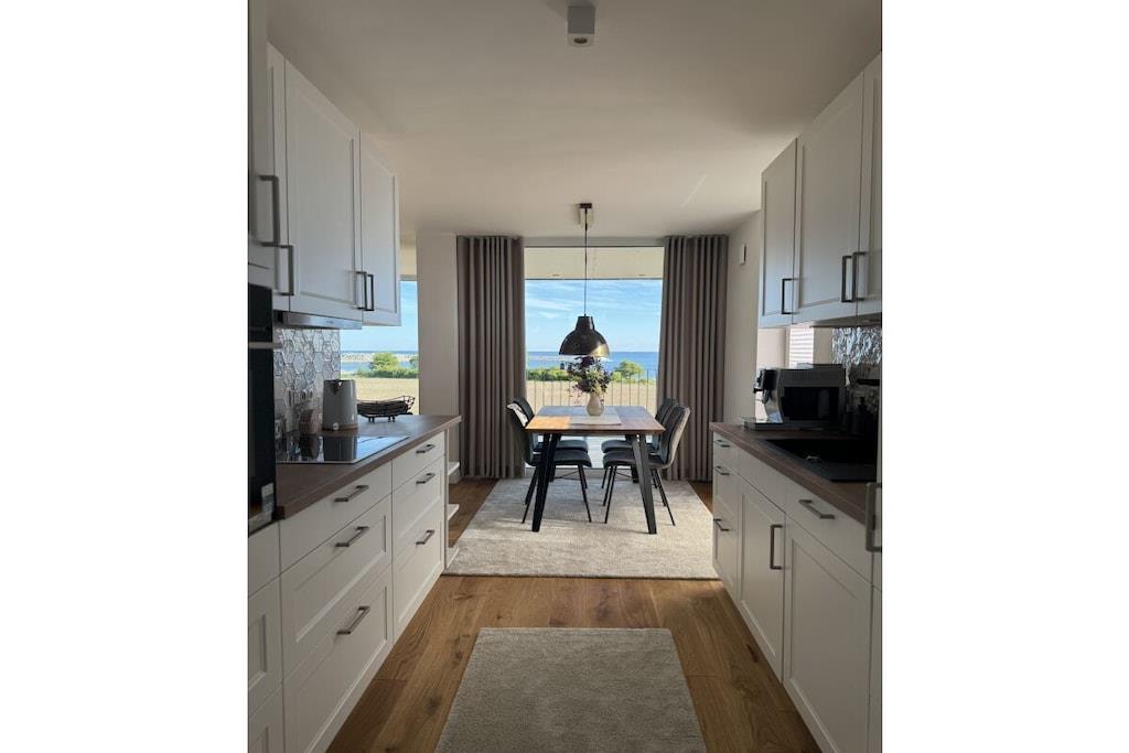 In dieser stilvollen, traumhaft gelegenen Ferienwohung genießen Sie aus deckenhohen Panoramafenstern einen ruhigen, entspannenden und atemberaubenden Blick auf die Ostsee. In wenigen Schritten sind Sie am hauseigenen Strand. Entspannen Sie in der Sauna. Genießen Sie das Abendessen auf der Terrasse oder im großzügigen Essbereich, dieses können Sie in der voll ausgestatteten Küche selbst zubereiten. Verweilen Sie bei einem Glas Wein oder in chilliger gesellschaftlicher Runde im stilvollen Wohnbereich. All das immer wieder mit dem faszinierenden Panorama der Ostsee. Die beiden Schlafzimmer bieten Platz für jeweils 2 Personen. Träumen Sie in Luxusbetten und wachen Sie auf mit Blick auf den herrlichen Sonnenaufgang über dem Meeresspiegel.