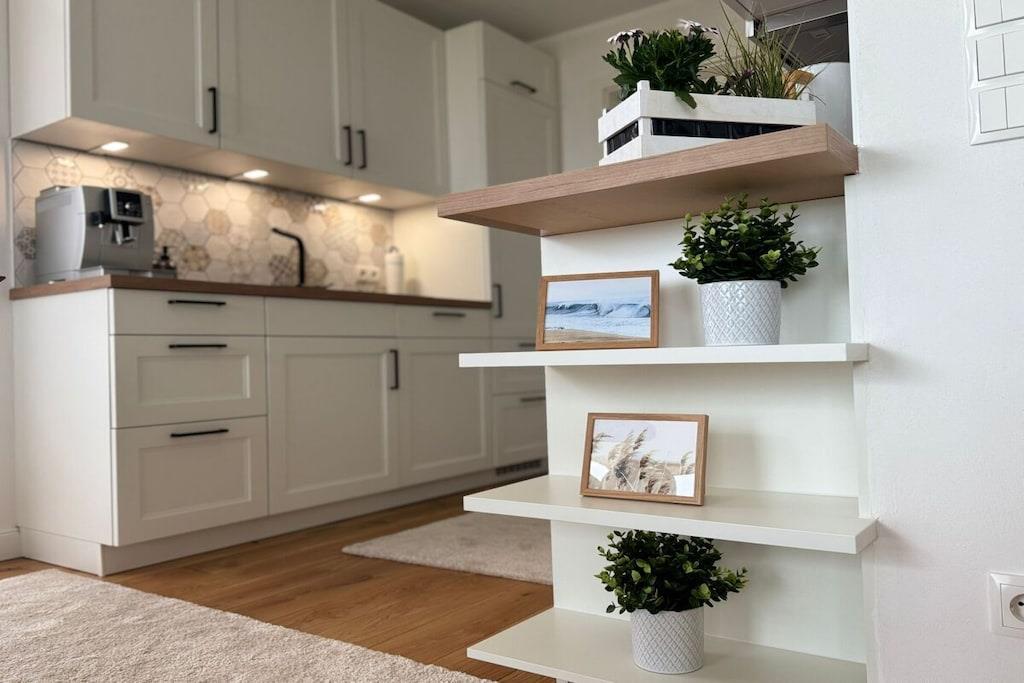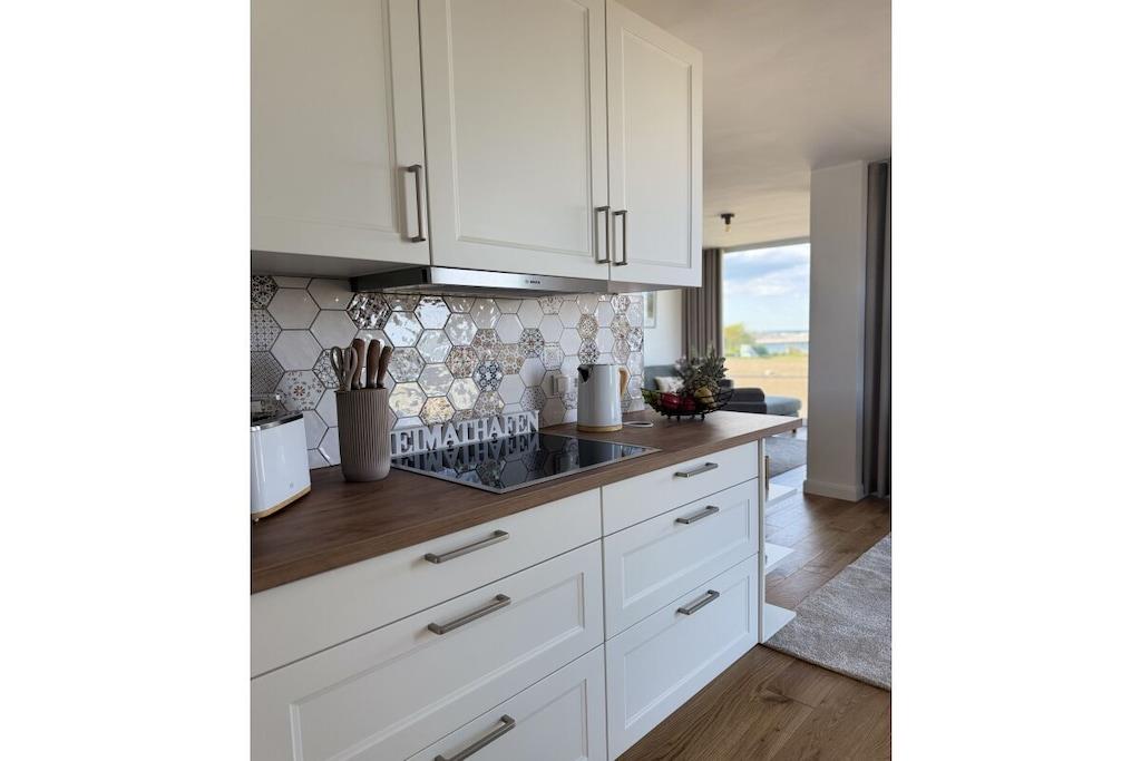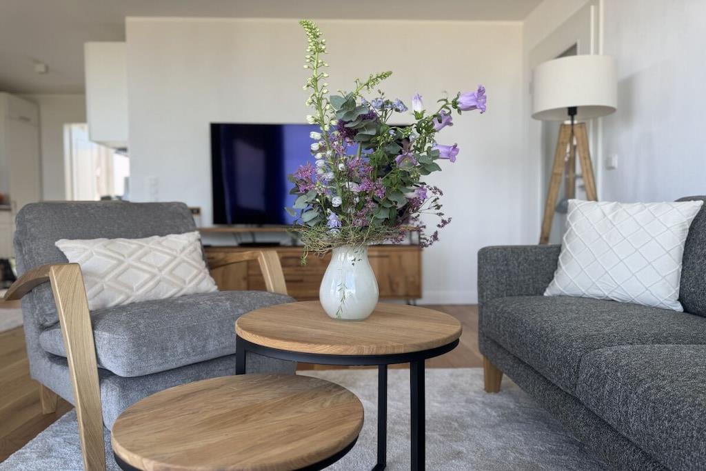 Stilvolle Ferienwohnung auf Fehmarn mit Panoramablick auf die Ostsee und eigener Sauna am Strand.