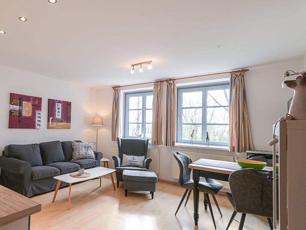 Die Wohnung hat eine geräumige Wohnküche, die komplett mit Geschirrspüler, Backofen, Mikrowelle usw. ausgestattete ist. Zudem lädt die gemütliche Sitzecke zum verweilen ein.Ein Schlafraum verfügt über ein Doppelbett, das zweite Schlafzimmer über ein Einzelbett. An der Westseite der Wohnung befindet sich ein großer Balkon mit herrlichem Blick in den 3000 qm großen Garten, ein wunderschöner Platz, um den oftmals farbenprächtigen Sonnenuntergang zu beobachten.Sat-TV, DVD, Stereoanlage und WLAN sind vorhanden.