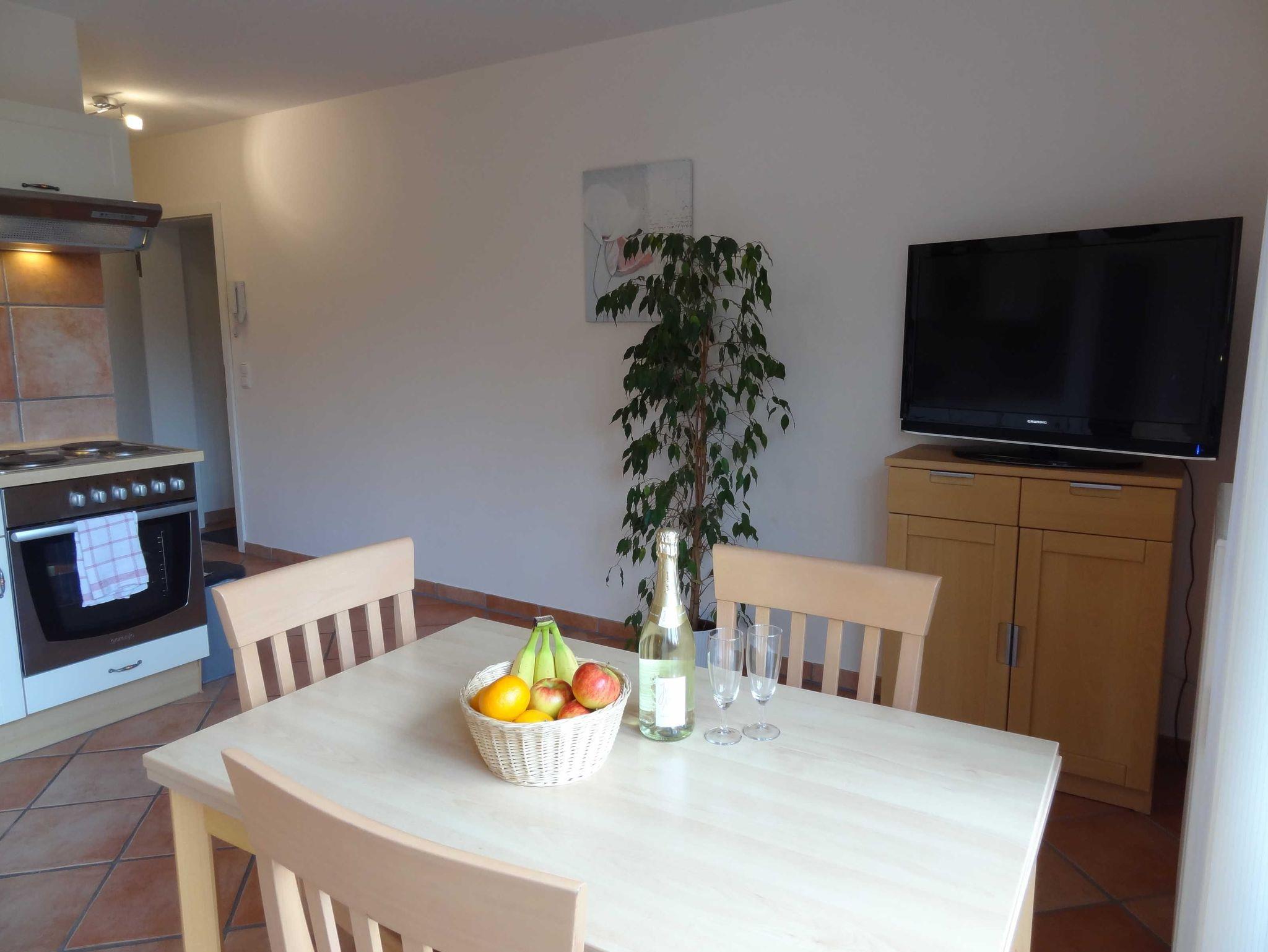 Die Ferienwohnung im Erdgeschoss ist mit ca. 40 qm für 2 Personen ausgelegt und verfügt über einen Wohnraum mit Küchenzeile, ein Bad mit Dusche und ein Schlafzimmer. Weitere Ausstattungsmerkmale: Sat-TV 42 Zoll Full HD, Telefon kostenlos (deutsches Festnetz außer Sondernummern), PC-Anschluss DSL kostenlos, PKW-Stellplatz, Fahrradstellplatz, Waschmaschinennutzung, eigene Terrasse.