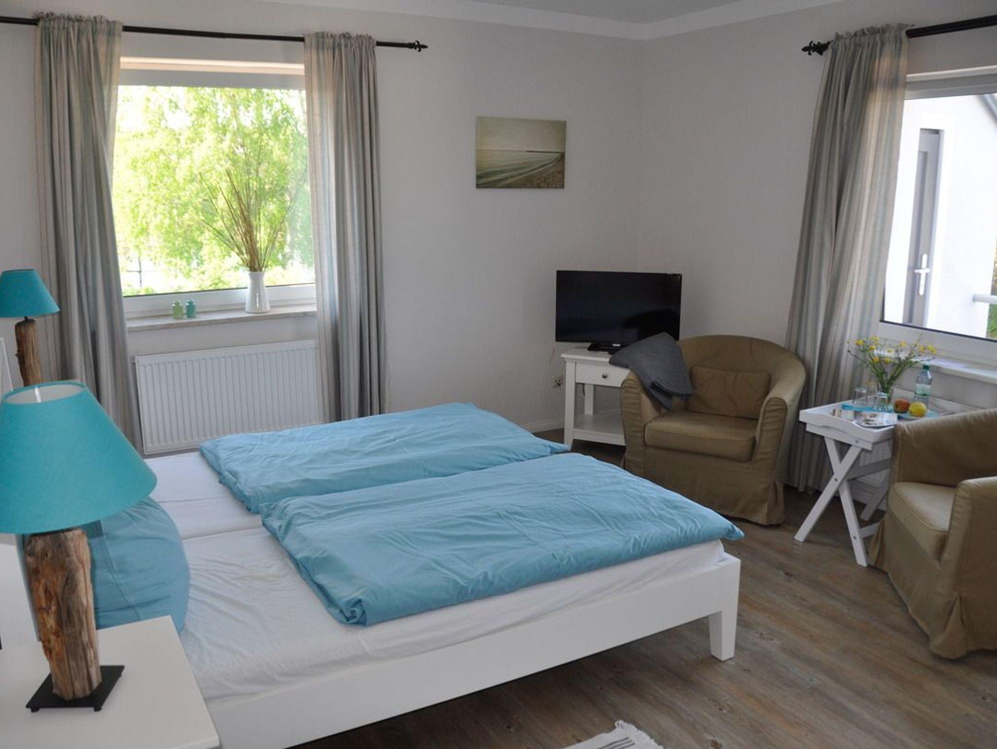 Gemütliches Doppelzimmer Hus Seeblick auf Fehmarn nahe Naturstrand Grüner Brink mit Balkon und WLAN.