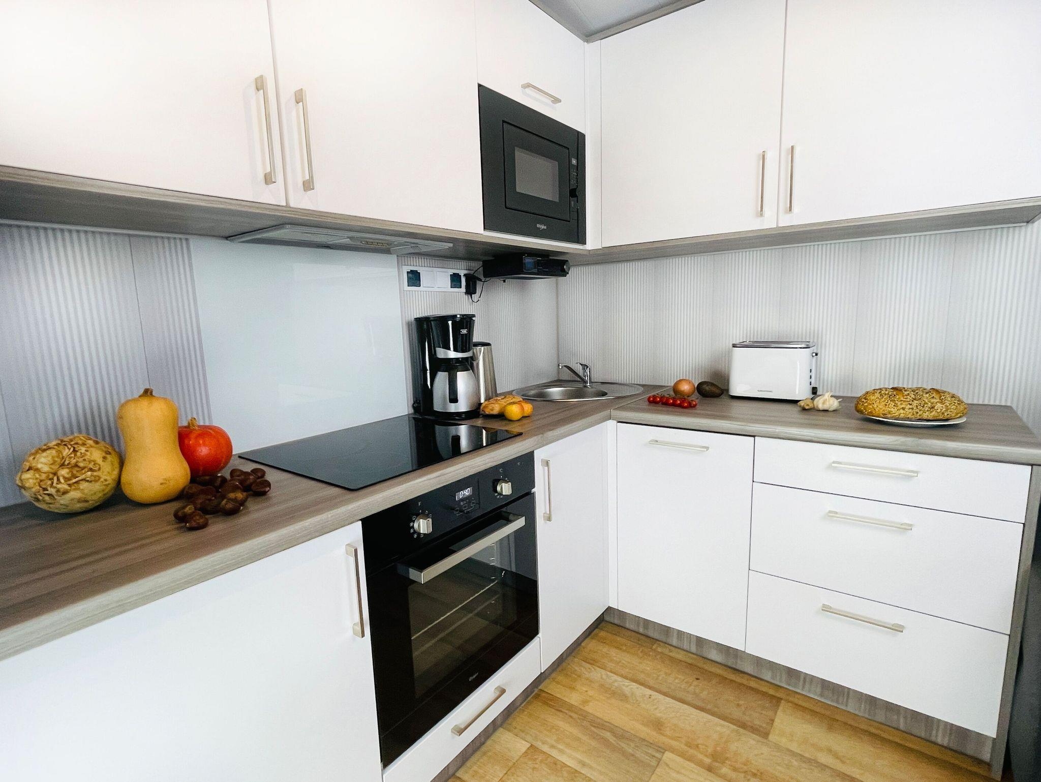 Am Strand des Gutes Teichhof erwartet Sie das Tiny House Humboldt für Ihren entspannten Urlaub am Meer. Dieses charmante Strandhaus hat Platz für bis zu 2 Erwachsene und 2 Kinder und bietet einen atemberaubenden Blick auf das Meer. Genießen Sie die Behaglichkeit eines Doppelbettes im Schlafzimmer sowie des eigenen Badezimmers mit Dusche. Die Wohnküche lädt zu gemeinsamen Kocherlebnissen ein und ist mit modernen Annehmlichkeiten wie einer Filterkaffeemaschine, Mikrowelle und Spülmaschine ausgestattet. An sonnigen Tagen lädt Ihre private 15 m2 große Terrasse im Garten zum Entspannen und Genießen ein. Im Wohnzimmer mit TV, DVD und Musikanlage finden Sie erholsame Stunden der Unterhaltung. Der Strand liegt direkt vor Ihrer Tür und verspricht Momente der Ruhe und Erholung. Überdachte Fahrradabstellmöglichkeiten und Parkplätze für Ihr Auto stehen auf dem Gelände des Gutshofs zur Verfügung. Die einzigartige Lage des Teichhofs ermöglicht es Ihnen, die idyllische Natur zu erkunden, während Sie zugleich von der Nähe zu zwei Restaurants und der nächsten Stadt profitieren, die nur 5 Kilometer entfernt liegt und eine Vielzahl von Einkaufs- und Restaurantmöglichkeiten bietet. Zum Be- und Entladen können Sie gerne direkt am Strandhaus halten. Das Check-in erfolgt bequem eigenständig. Auf dem Gelände des Teichhofes erwartet Sie zudem ein Streichel-Zoo mit Schafen und eine Wiese mit Ponys. Das Tiny House James Cook bietet somit die ideale Kombination aus Ruhe und Erholung sowie der Nähe zu verschiedenen Aktivitäten und Annehmlichkeiten für einen unvergesslichen Urlaub.