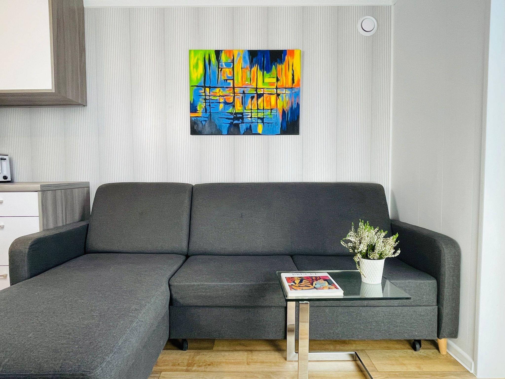 Charmantes Tiny House Humboldt am Strand des Gutes Teichhof mit Meerblick und privater Terrasse für entspannte Urlaubstage.