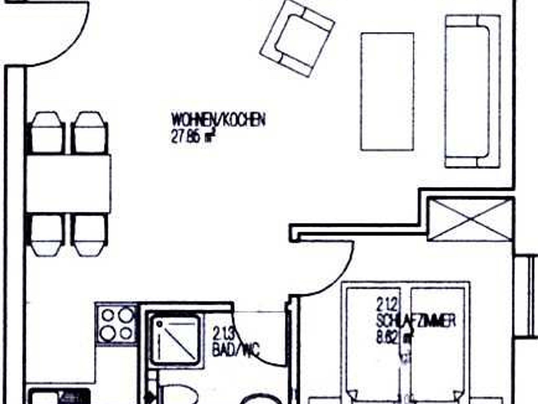 Die Ferienwohnung im Erdgeschoss ist mit ca. 40 qm für bis zu 2 Personen ausgelegt und verfügt über einen kombinierten Wohnraum mit Küchenzeile, ein Bad mit Dusche und ein Schlafzimmer. Weitere Ausstattungsmerkmale: Sat-TV, Telefon kostenlos (deutsches Festnetz außer Sondernummern), PC-Anschluss DSL kostenlos, PKW-Stellplatz, Fahrradstellplatz, Waschmaschinennutzung, eigene Terrasse.