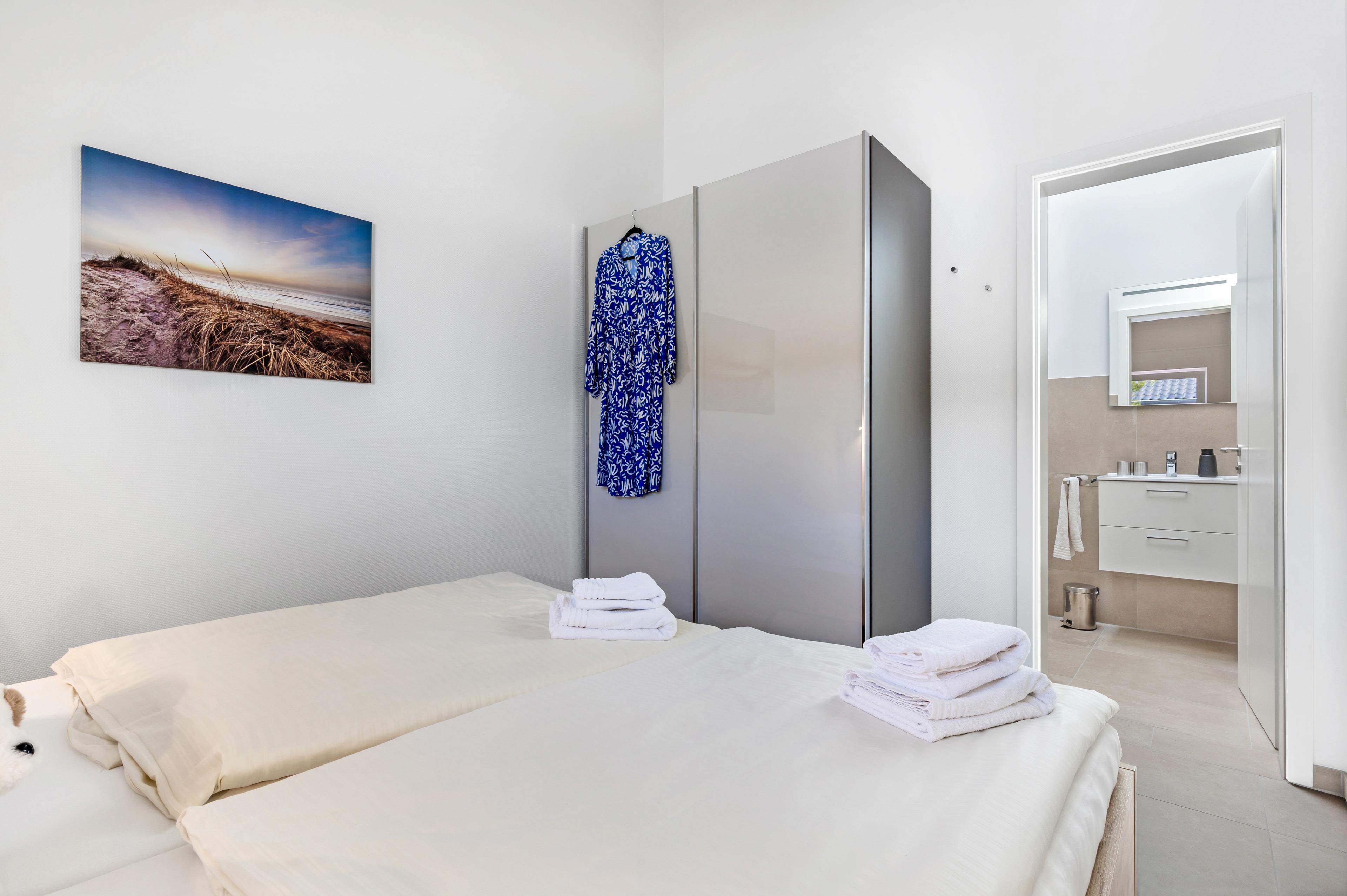 Das im Jahr 2023 neugebaute Ferienhaus verfügt über zwei getrennte, ebenerdige Wohnungen mit einer jeweiligen Größe von ca. 80qm für 2-5 Personen. Jede, der beiden Einheiten, besticht durch Ihren hohen Komfort und eine stilvolle sowie hochwertige Einrichtung in warmen Farbtönen.