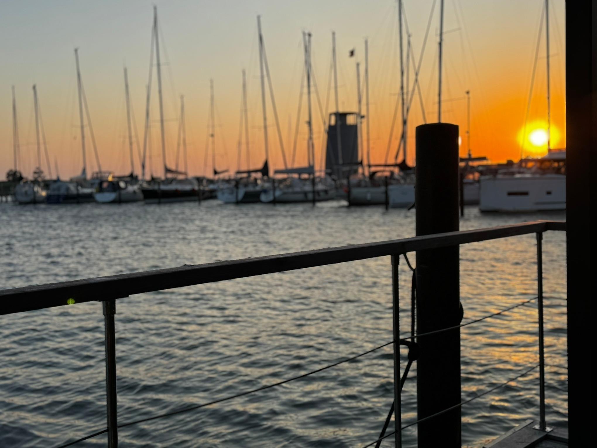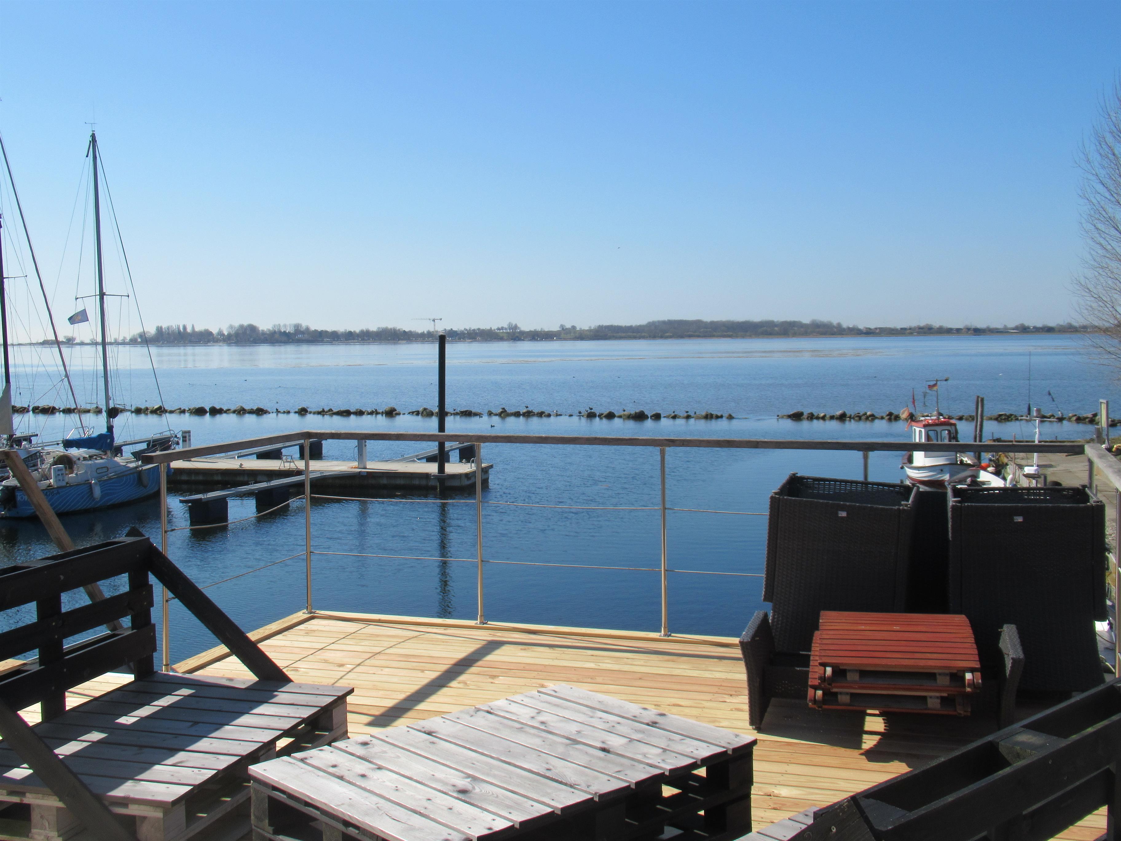 Sie haben freien Blick auf das Meer, die Fehmarnsundbrücke und das Hafengeschehen.