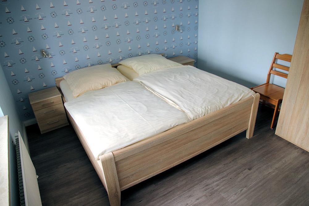 Im Erdgeschoss liegen die zwei Schlafzimmer, besonders die Holzbalkendecke macht die Räume sehr gemütlich. Auch 5 Personen finden Platz für sanfte Träume: ein Zimmer hat ein Doppelbett, im zweiten Zimmer steht ein Doppelbett und ein Einzelbett. Im Bad erfrischen Sie sich unter einer modernen Dusche.