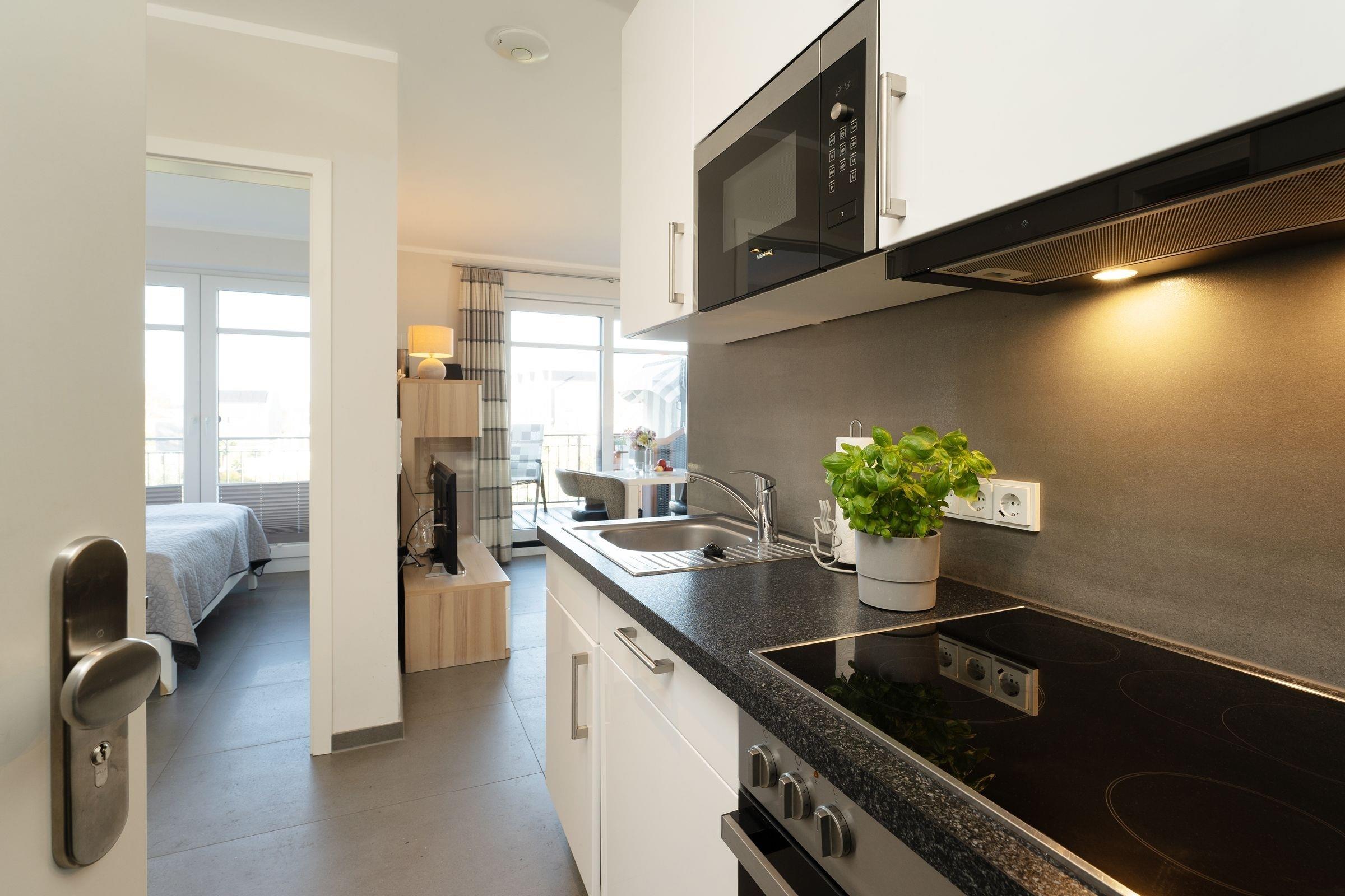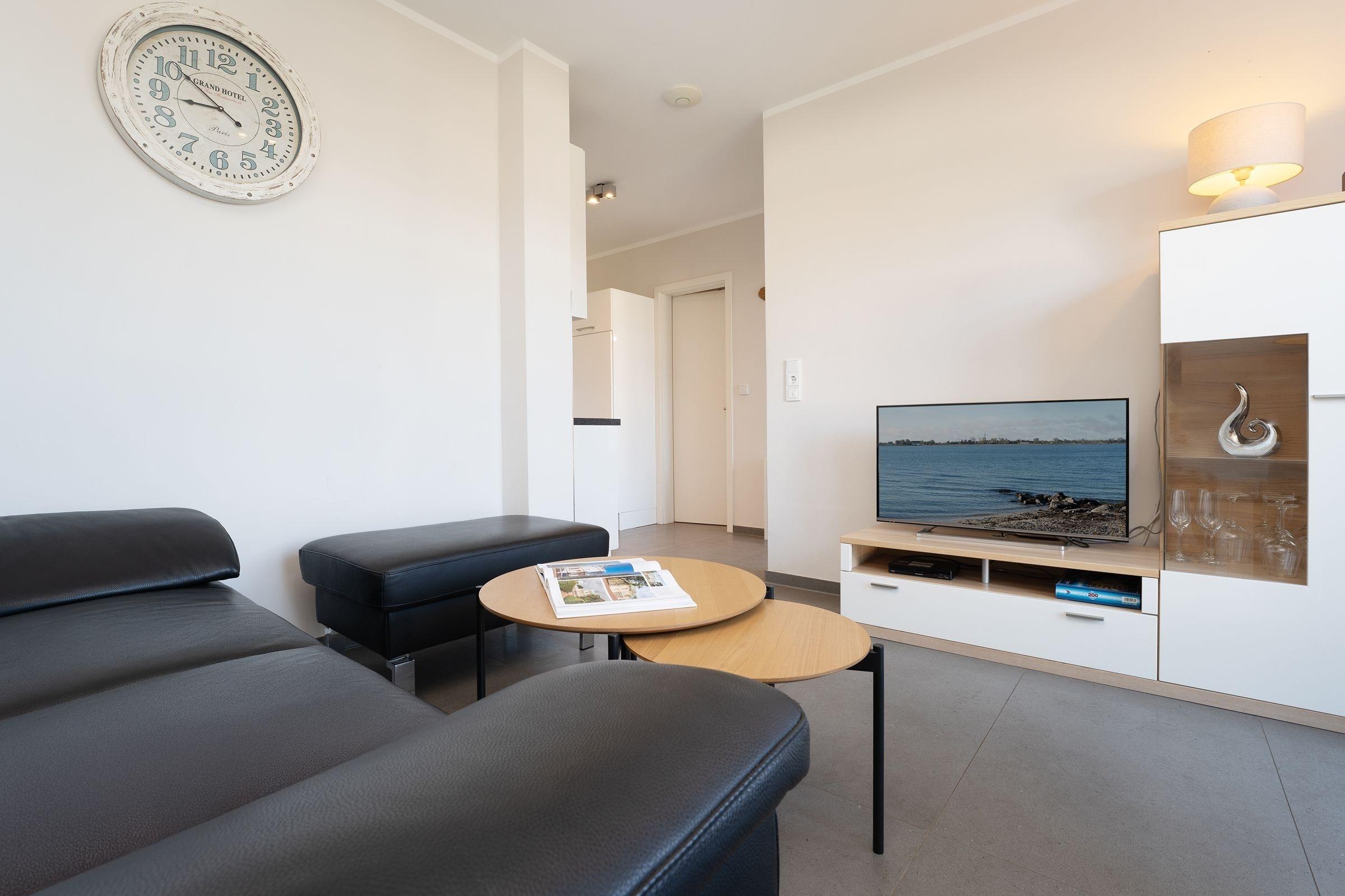 Das Appartements punktet mit seiner exklusiven Ausstattung: Lichtdurchflutende Fenster mit Blick auf die Ostsee und eine moderne, offene und gut ausgestattete Küche mit angrenzendem Ess- und Wohnbereich - was wünscht man sich mehr im Urlaub? Der traumhafte Balkon mit Meerblick lädt zum Entspannen und Verweilen ein. Das edle Schlafzimmer ist mit einem Doppelbett, einem Kleiderschrank für Ihre Urlaubsgarderobe sowie einem zusätzlichen TV-Gerät ausgestattet ist. Das hochwertige Duschbad hat eine bodengleiche Dusche. Die Wohnung ist komplett gefliest und besitzt eine Fußbodenheizung. Genießen Sie gemütliche Grillabende nach einem tollen Tag am Strand oder einem erlebnisreichen Ausflug in die Landschaft der reizvollen Ostseeküste. Lassen Sie den Tag auf dem Balkon mit eigenem Strandkorb entspannt ausklingen.