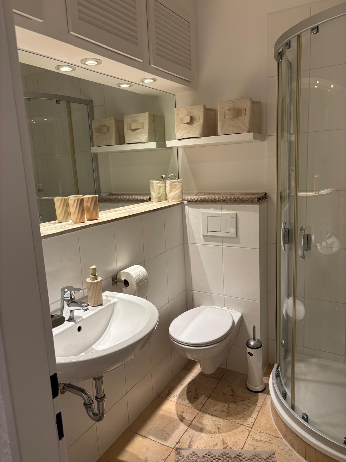 1-Raum-Appartement im Erdgeschoss (25m²), Nichtraucher. Das Wohn-Schlafzimmer ist in einen Schlaf- und einen Wohnbereich aufgeteilt. Schlafbereich mit Doppelbett, Zubehör und Kleiderschrank. Der Wohnbereich verfügt über eine Couch mit kleinem Tisch, Essecke mit 3 Stühlen. Die Küchenzeile ist mit einem kleinen Ceranfeld sowie einer Mikrowelle, Kaffeemaschine, Wasserkocher und Toaster versehen. Das Bad hat eine Dusche, WC und ein Waschbecken. Außerdem stehen den Gästen ein nummerierter Parkplatz vor der Wohnung (57010)direkt vorm Haus zur Verfügung, Kostenloses W-Lan steht ihnen in kürze zur Verfügung.