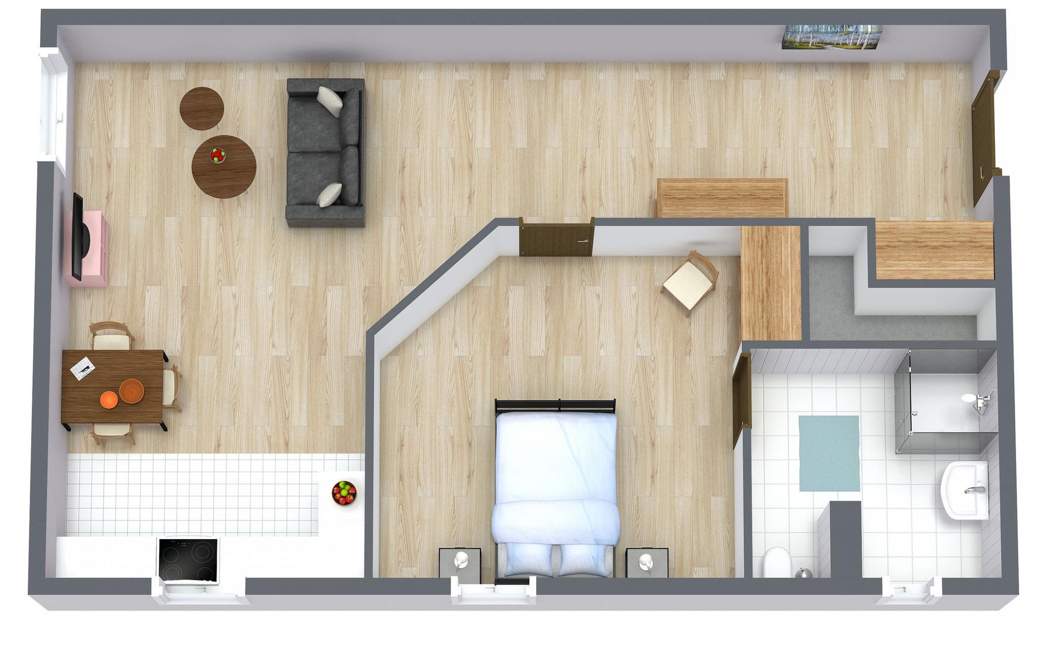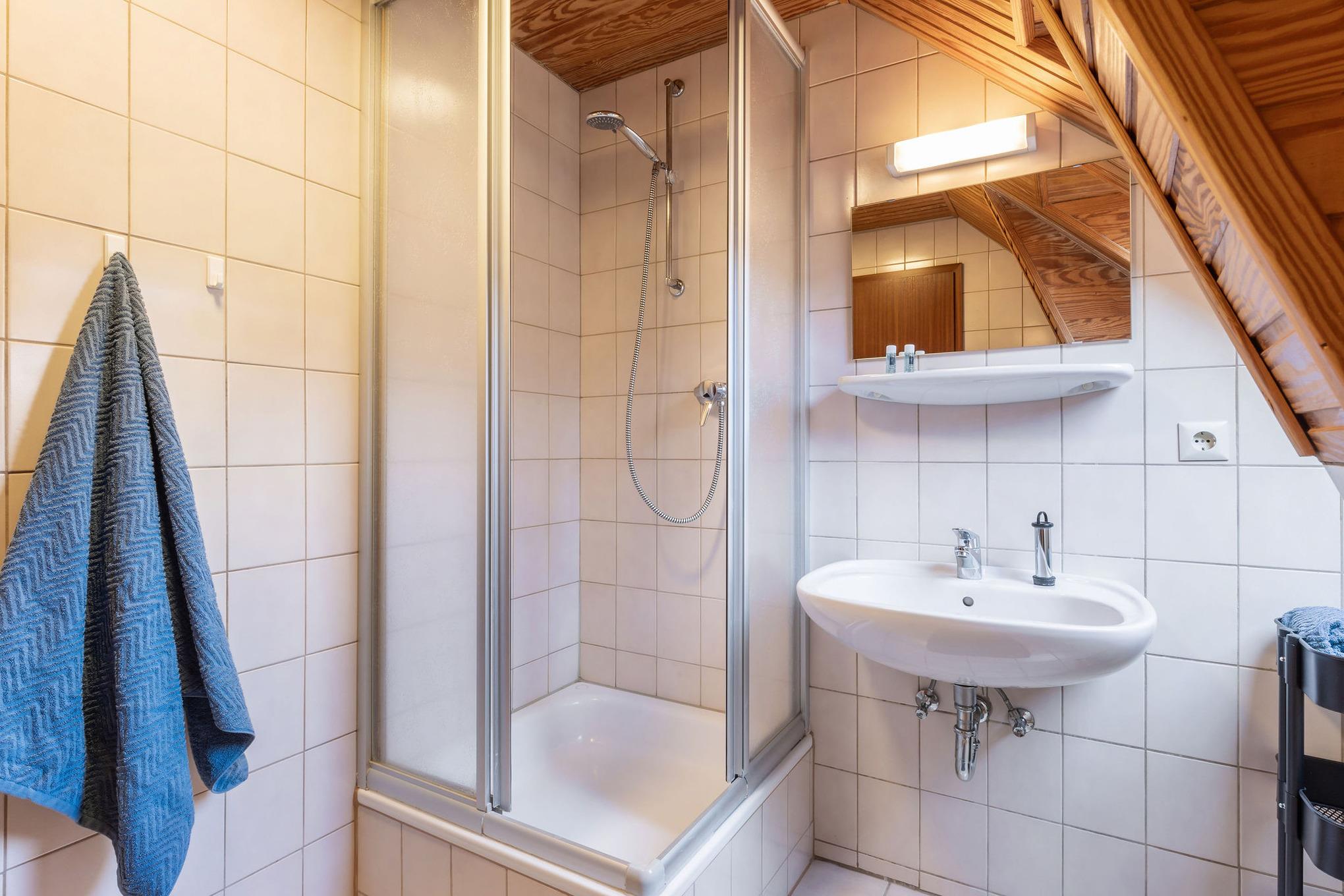 Die Wohnung liegt in einem charmanten ehemaligen Bauernhaus, dessen rustikale Holzbalken erhalten geblieben sind und für eine besonders warme und authentische Atmosphäre sorgen.