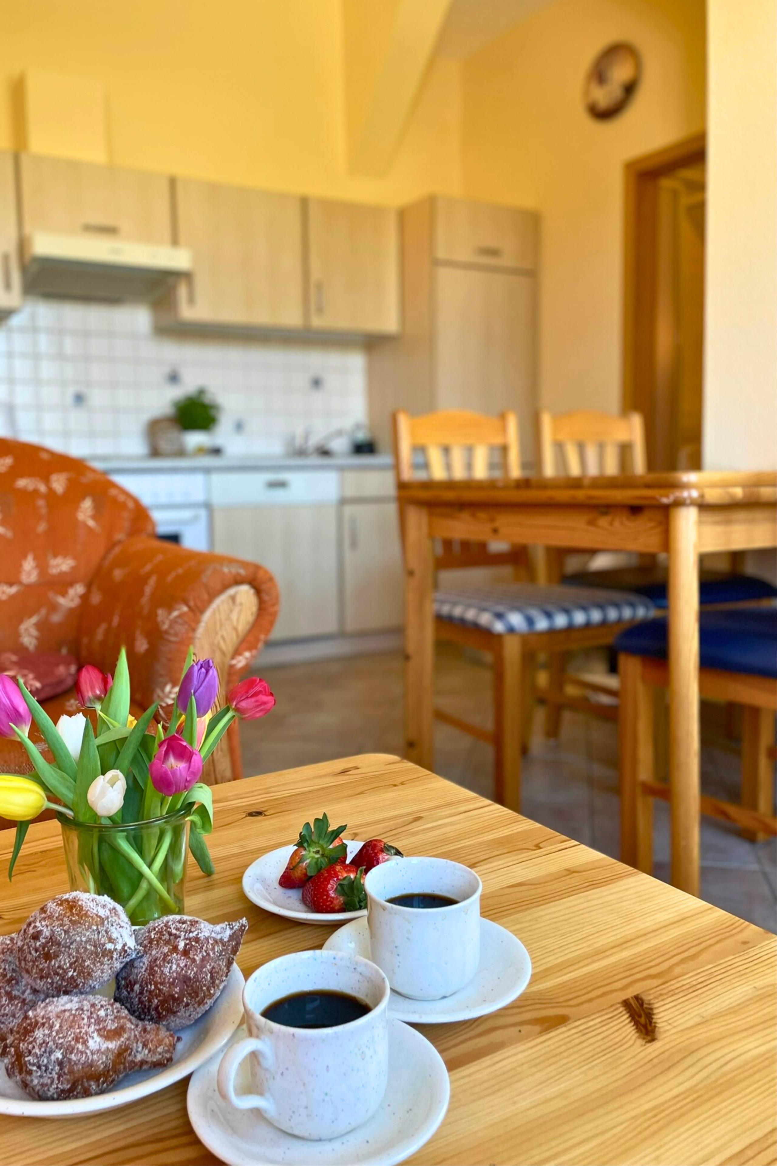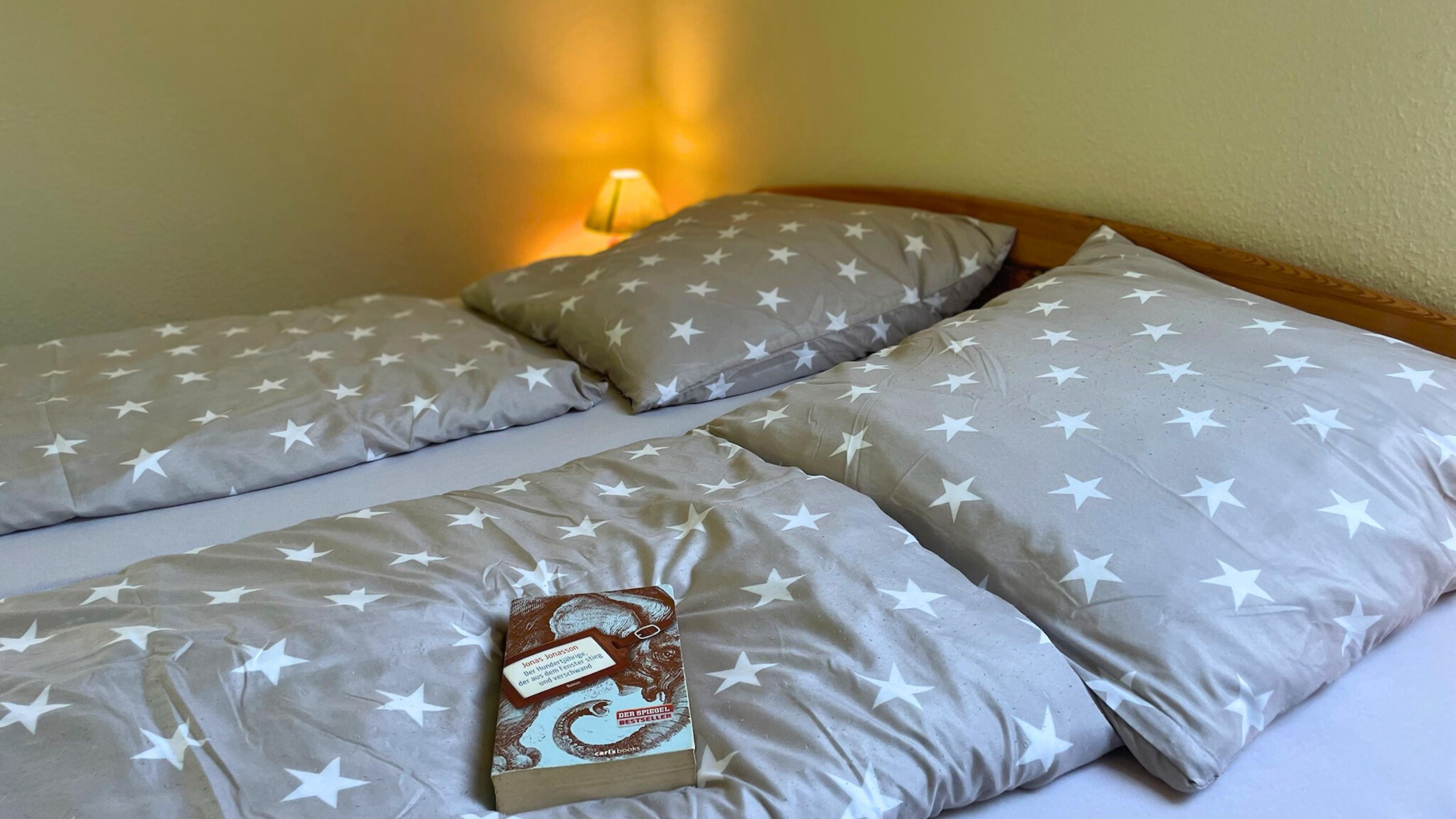 Auf 45 m² findest du alles, was du für entspannte Tage brauchst: eine gut ausgestattete Küchenzeile, einen gemütlichen Wohn- und Essbereich sowie ein Duschbad. Platz ist für 3 Personen – ideal für Paare oder kleine Familien. Im großen Schlafzimmer schläfst du im Doppelbett. Das zweite Einzelzimmer bietet Rückzugsort für kleine oder große Träumer.