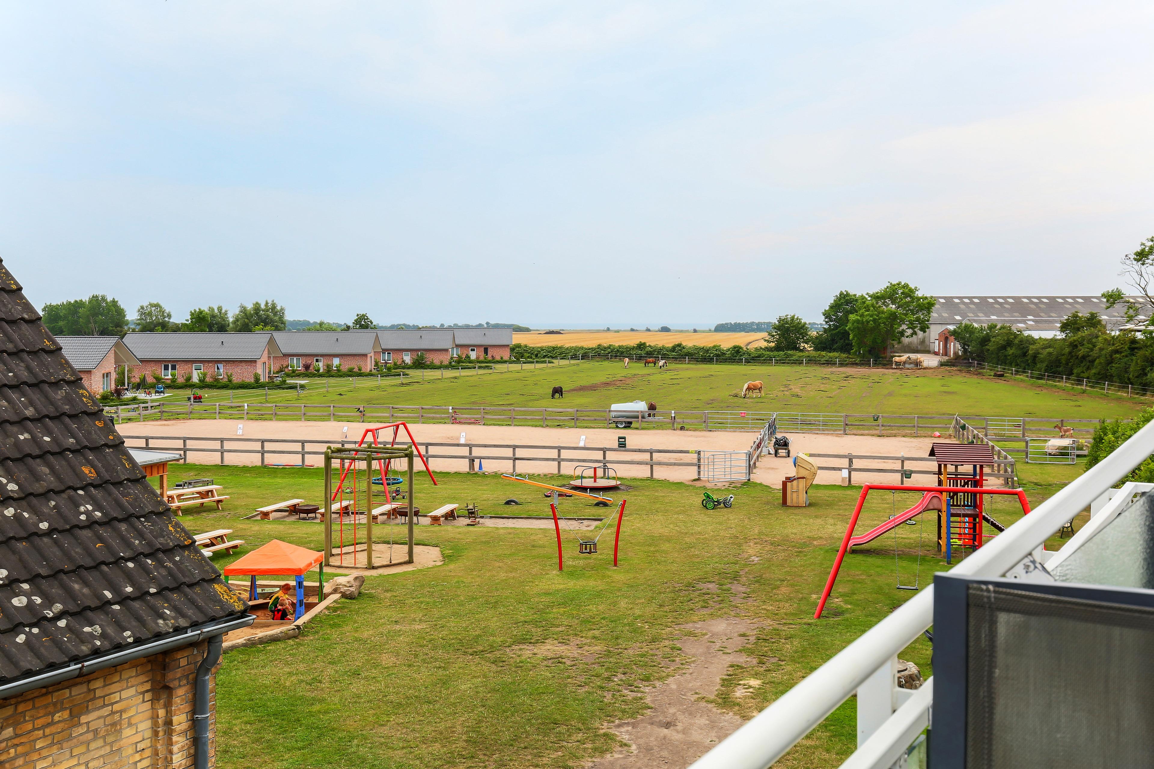 Gemütliche Ferienwohnung mit Meerblick, Balkon und Spielplatzblick auf der Büdl'farm in Fehmarn.