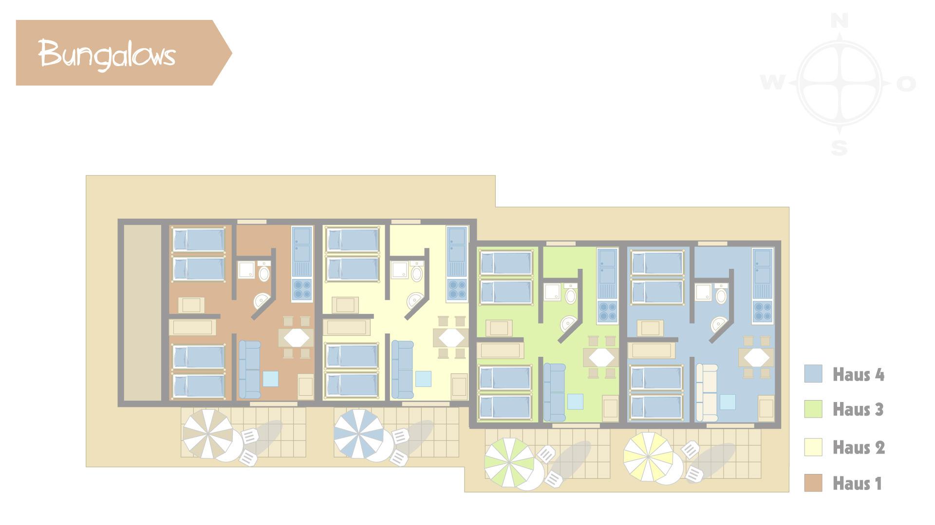 Ferienhaus (58qm): Das Haus hat einen separaten Eingang, zwei separate Schlafzimmer, Duschbad mit WC, einen Wohnraum mit voll ausgestatteter Küche, Esstisch, Sofagarnitur, TV, DVD-Player usw. und eine Südterrasse mit direktem Zugang zum Spielplatz und Blick auf die Ponyweide und die Ostsee. Das modern renovierte Haus ist vom DTV mit vier Sternen ausgezeichnet.