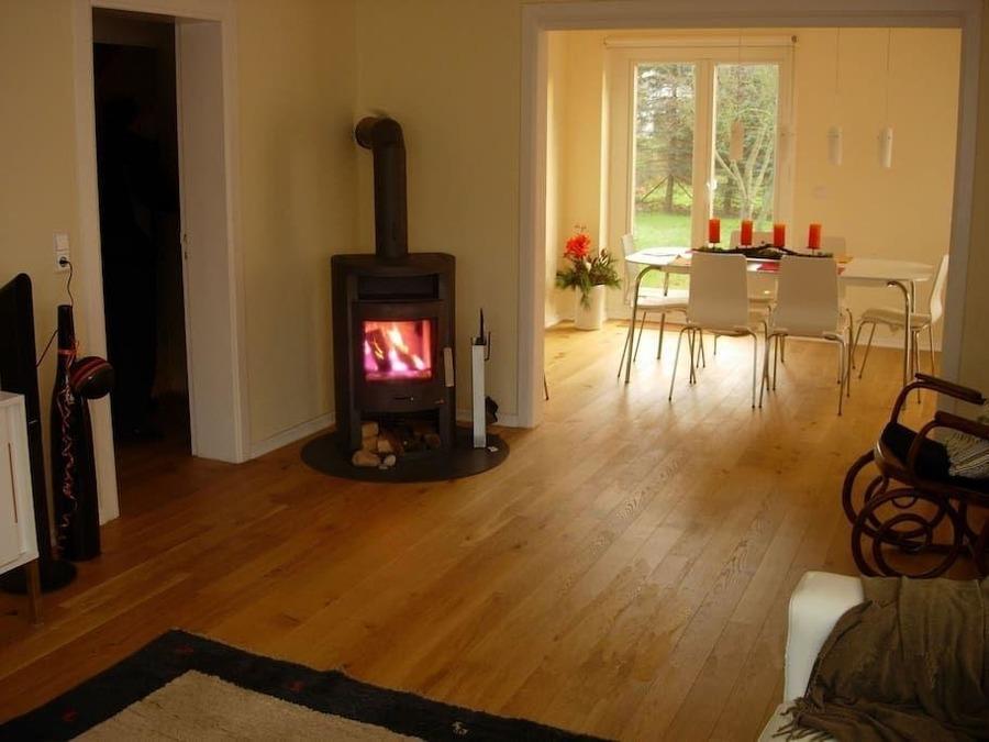 Das Ferienhaus verfügt über insgesamt 6 Zimmer und 2 Bäder. Die 4 Schlafzimmer sind jeweils mit Doppelbetten ausgestattet (1,40 m breit). Im EG erwartet Sie eine komplett eingerichtete Einbauküche. Das helle Wohnzimmer ist gemütlich und der Kamin verbreitet zu jeder Jahreszeit eine wohlige Atmosphäre. Im Erdgeschoss befindet sich ebenfalls ein Duschbad mit barrierefreiem Zugang,sowie ein Schlafzimmer .Das Badezimmer im 1. Stock verfügt über eine Badewanne.Sie finden 3 weitere Schlafzimmer im OG ( sowie 1 x Kinderbett und 1 x Wickeltisch im OG).Sollte das Wetter einmal nicht so mitspielen, stehen im Haus zahlreiche CDs und DVDs für Erwachsene und Kinder sowie Gesellschaftsspiele und zahlreiche Bücher ,vorwiegend Kinderbücher ,zur Verfügung.NEU! ein Klavier im Wohnzimmer ! Viel Spaß beim Musizieren!!